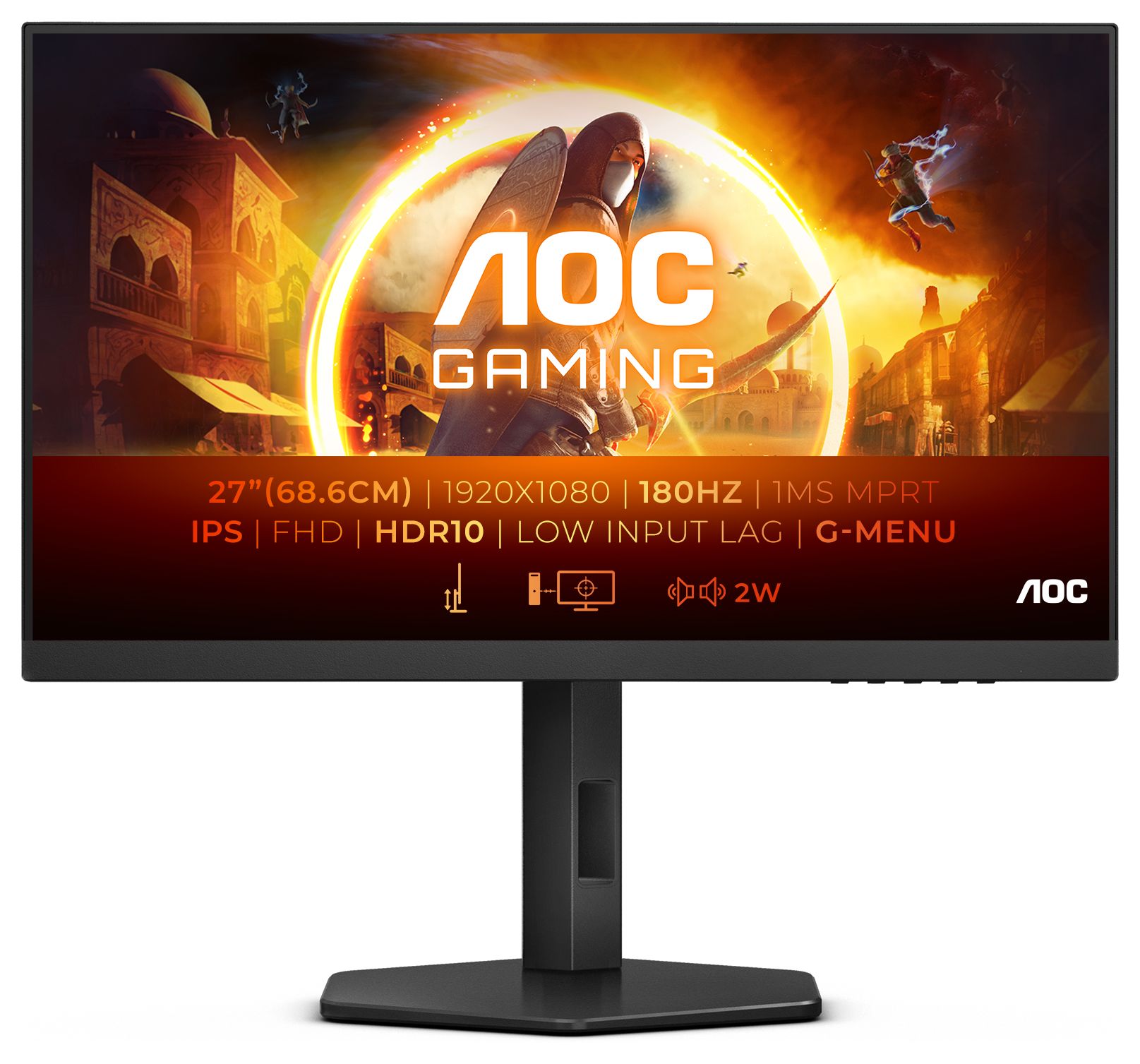 Screen size (inch) 27, Panel resolution 1920x1080, Max Refresh rate 180 Hz, Response time MPRT 0.5 ms, Panel type Fast IPS, HDMI HDMI 2.0 x 2, DisplayPort DisplayPort 1.4 x 1, Sync technology (VRR) Adaptive Sync