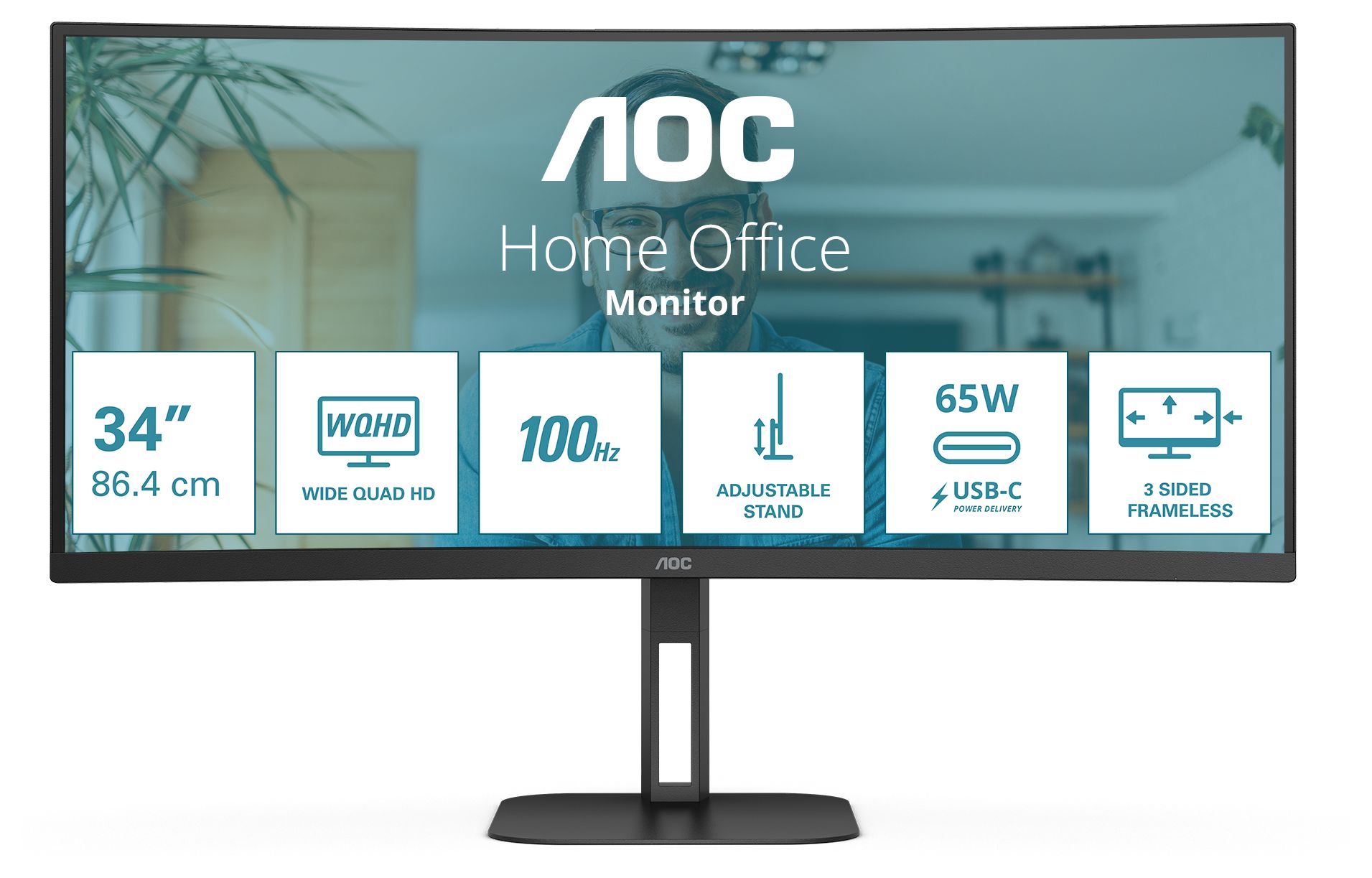 Der AOC CU34V5C ist ausgestattet mit einem gewölbten 34 Zoll VA-Panel mit ultraweiter QHD-Auflösung Die 21:9-Auflösung sorgt für ein beeindruckendes Seherlebnis in einem dreiseitigen, rahmenlosen Gehäuse, das Sie nach Bedarf neigen und in der Höhe verstellen können. Er ist bestens gerüstet, um Ihre Produktivität dank USB-C mit Stromzufuhr von bis zu 65 W, 4 USB-Anschlüssen und HDMI zu steigern und bietet außerdem Bild für Bild MultiView für komplexestes Multitasking.