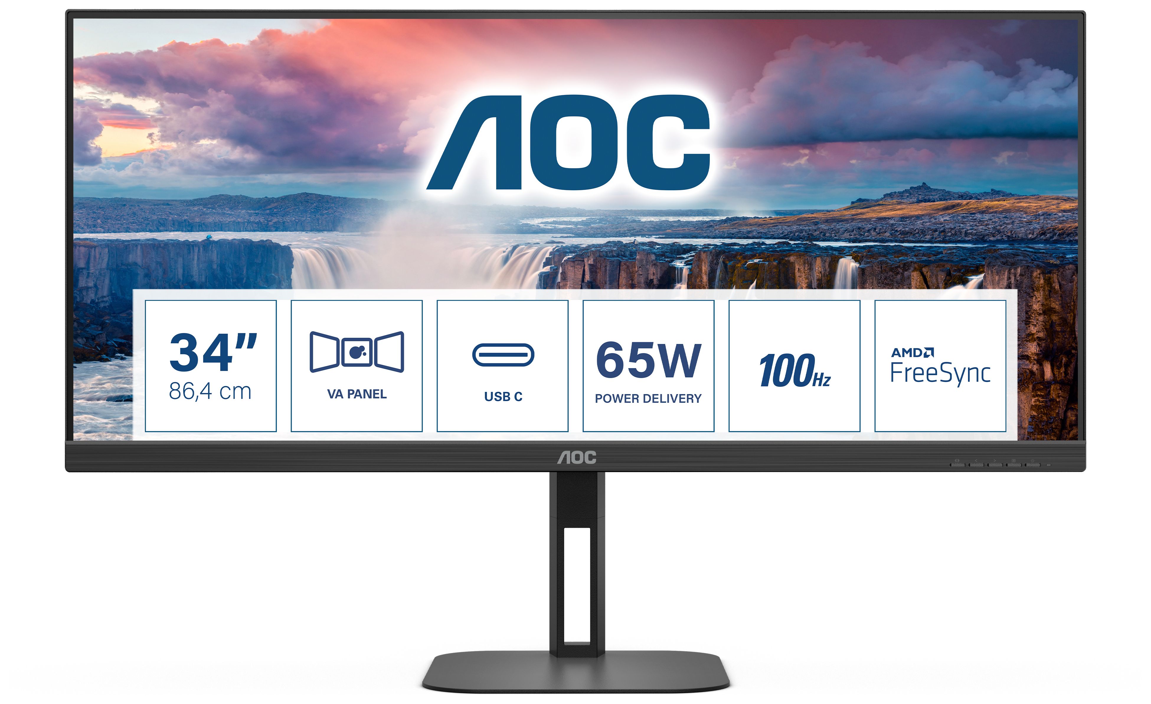 AOC V5 U34V5C/BK, 86,4 cm (34"), 3440 x 1440 Pixel, UltraWide Quad HD, LCD, 4 ms, Schwarz