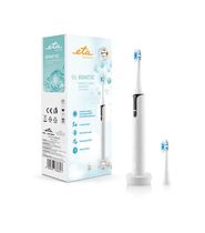 Eta Sonetic. Zweck: Erwachsener, Zahnbürstentyp: Schallzahnbürste, Produktfarbe: Schwarz. Energiequelle: Akku, Akku-/Batterietyp: Integrierte Batterie, Akku-/Batterietechnologie: Lithium-Ion (Li-Ion). Breite: 30 mm, Tiefe: 30 mm, Höhe: 250 mm. Verpackungsbreite: 110 mm, Verpackungstiefe: 60 mm, Verpackungshöhe: 230 mm. Anzahl enthaltener Griffe: 1 Stück(e), Anzahl enthaltener Bürstenköpfe: 2 Stück(e), Anzahl enthaltener Akkus/Batterien: 1 Stück(e)