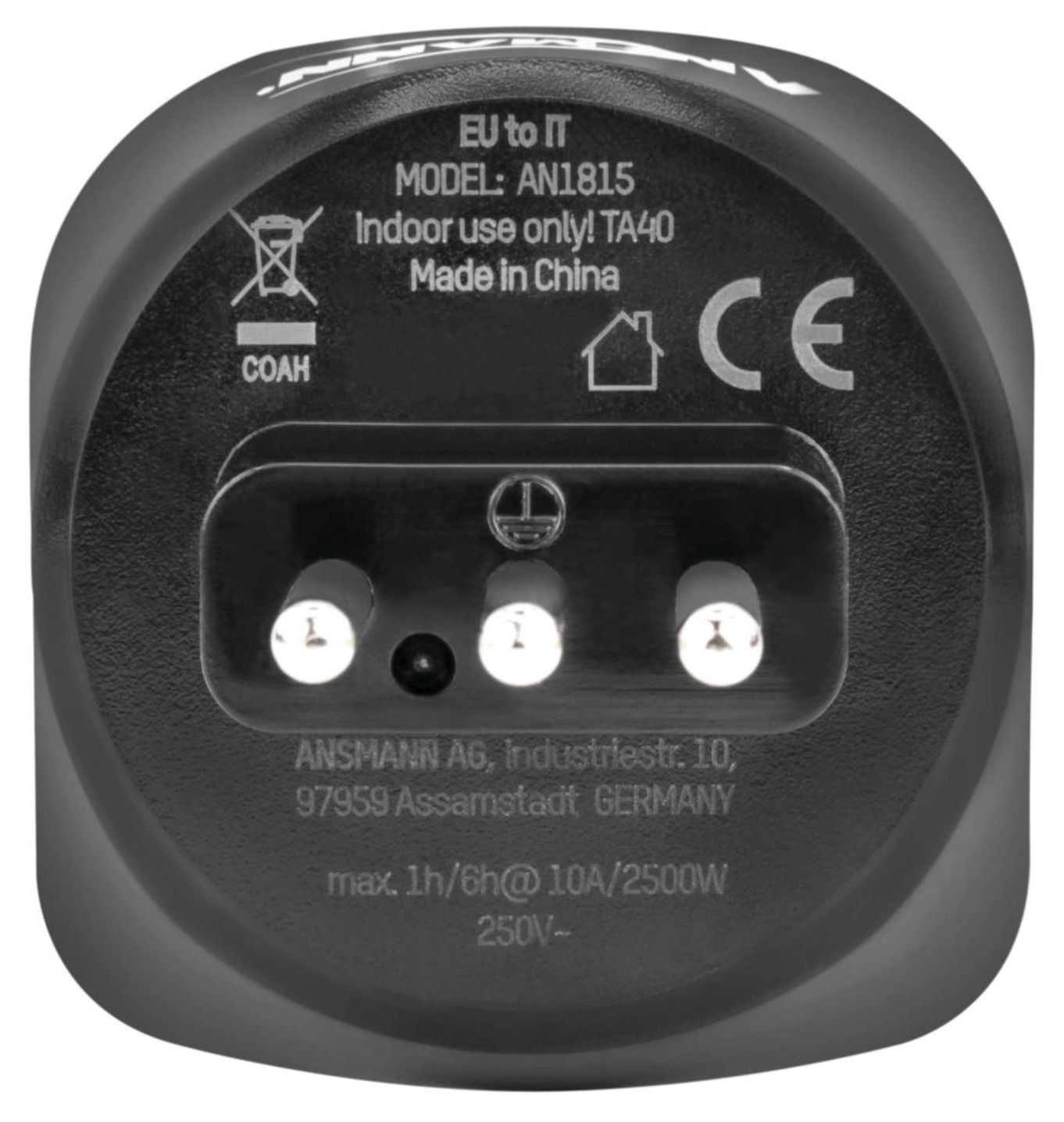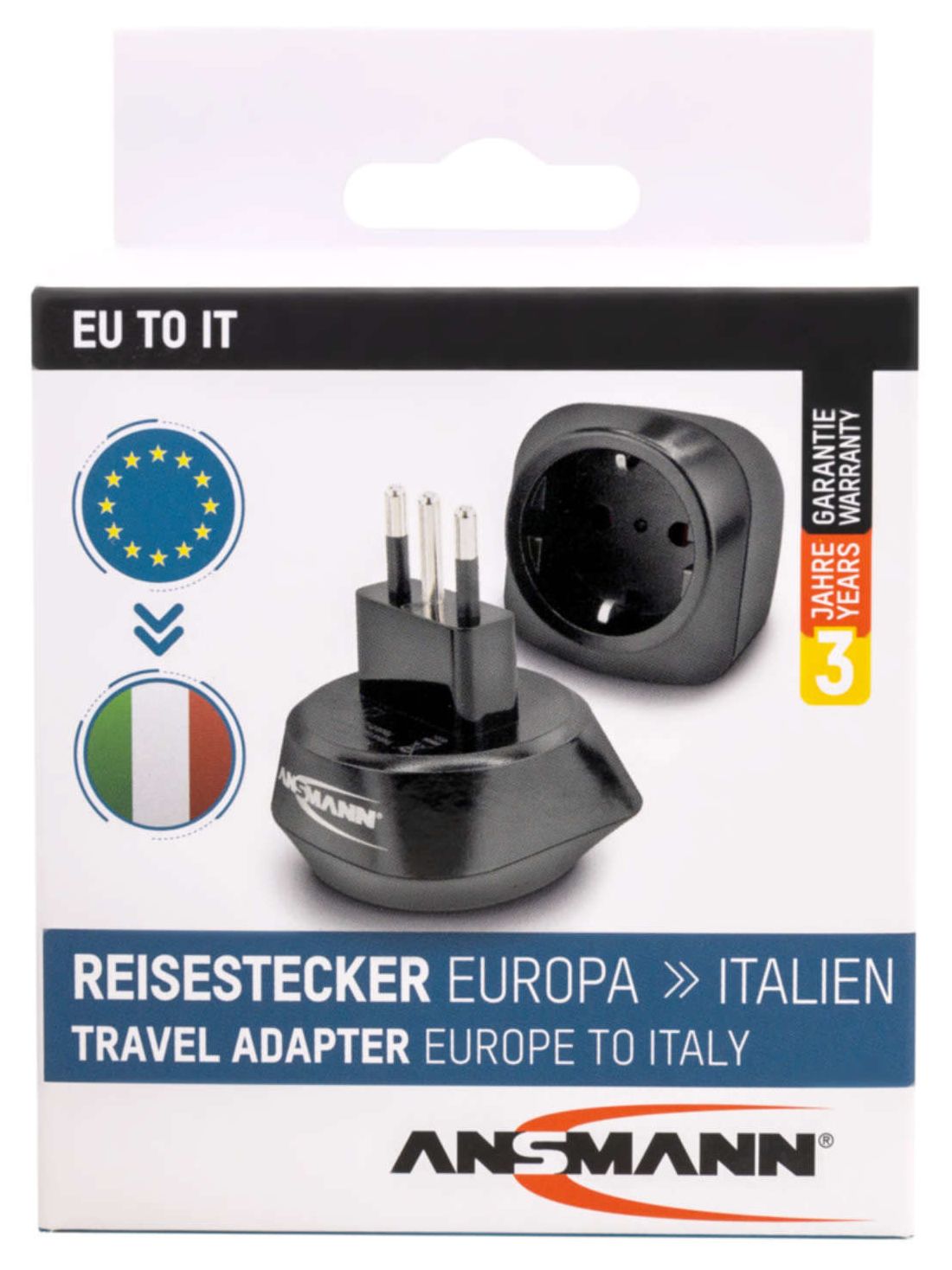 Ansmann 1250-0035. Anschlussstecker-Typ: Typ L (IT), Buchsenstecker-Typ: Typ C (Euro-Stecker), Anschluss1 Formfaktor: Gerade
