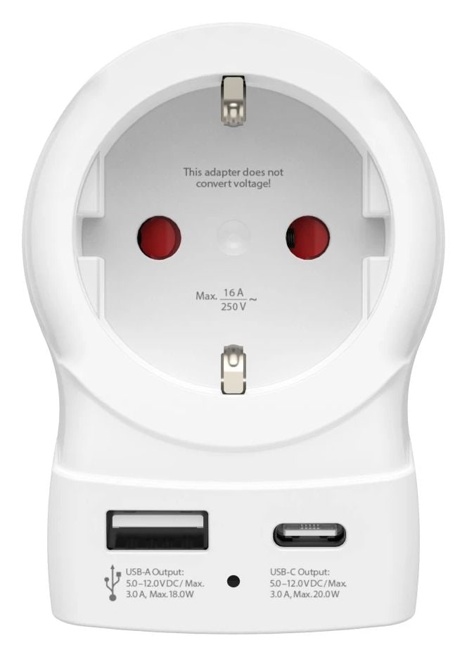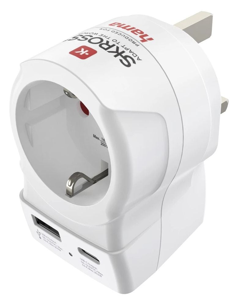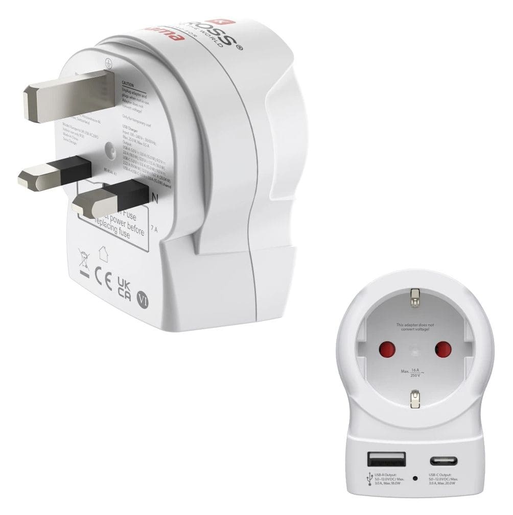 Reiseadapter, "EU to UK", 1x USB-A, 1x USB-C (PD), 20 W