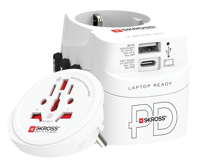 Skross 1.302474, Universal, Universal, Typ B, Typ I (AU), Typ F, Typ G (VK), Typ L (IT), Typ B, Typ I (AU), Typ C, Typ F, Typ J (CH), Typ N (BR), Typ G (VK), 100-250 V, 50 - 60 Hz