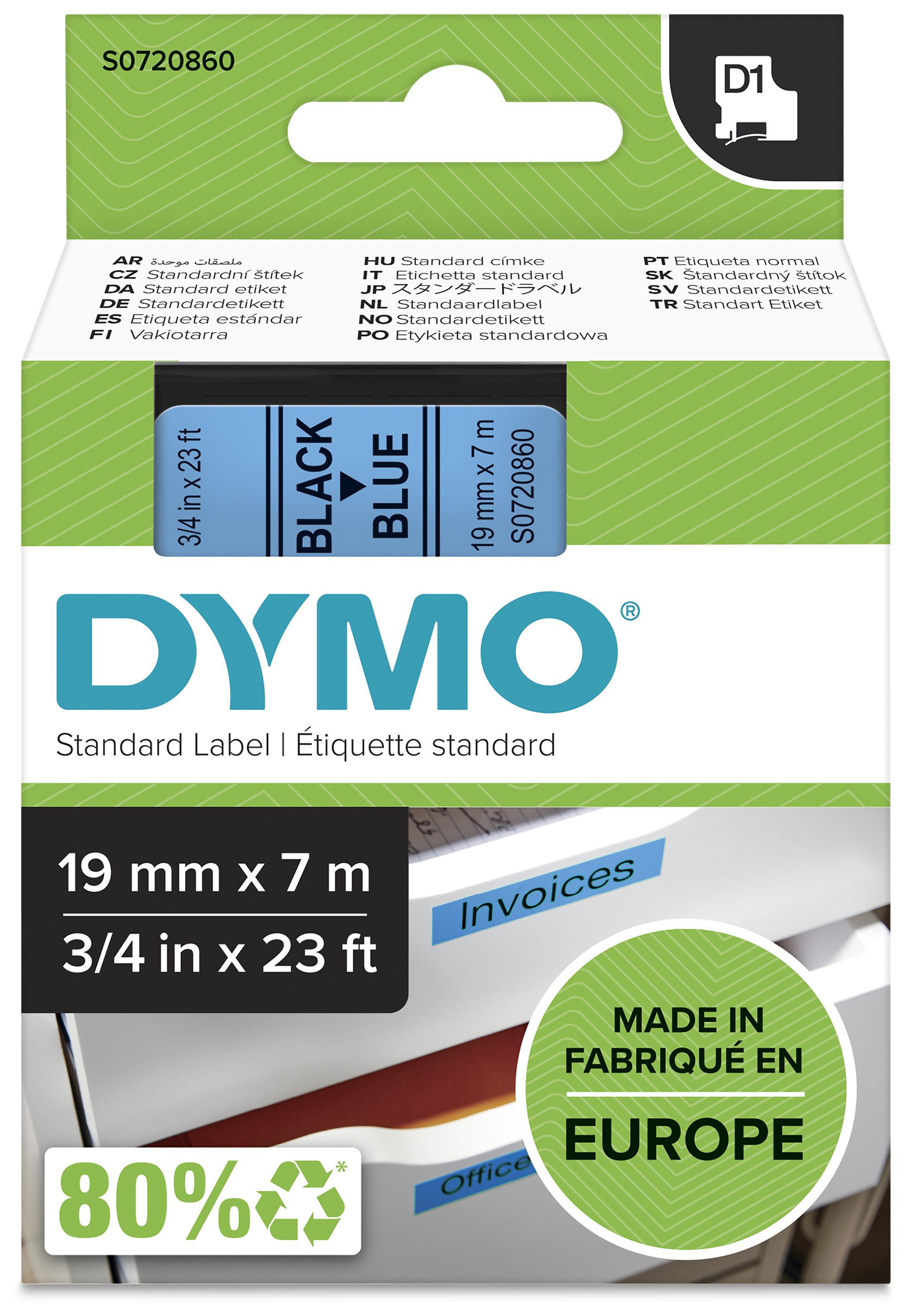 DYMO Original D1-Etikettenband | schwarz auf blau | 19 mm x 7 m | selbstklebendes Schriftband | für LabelManager-Beschriftungsgerät