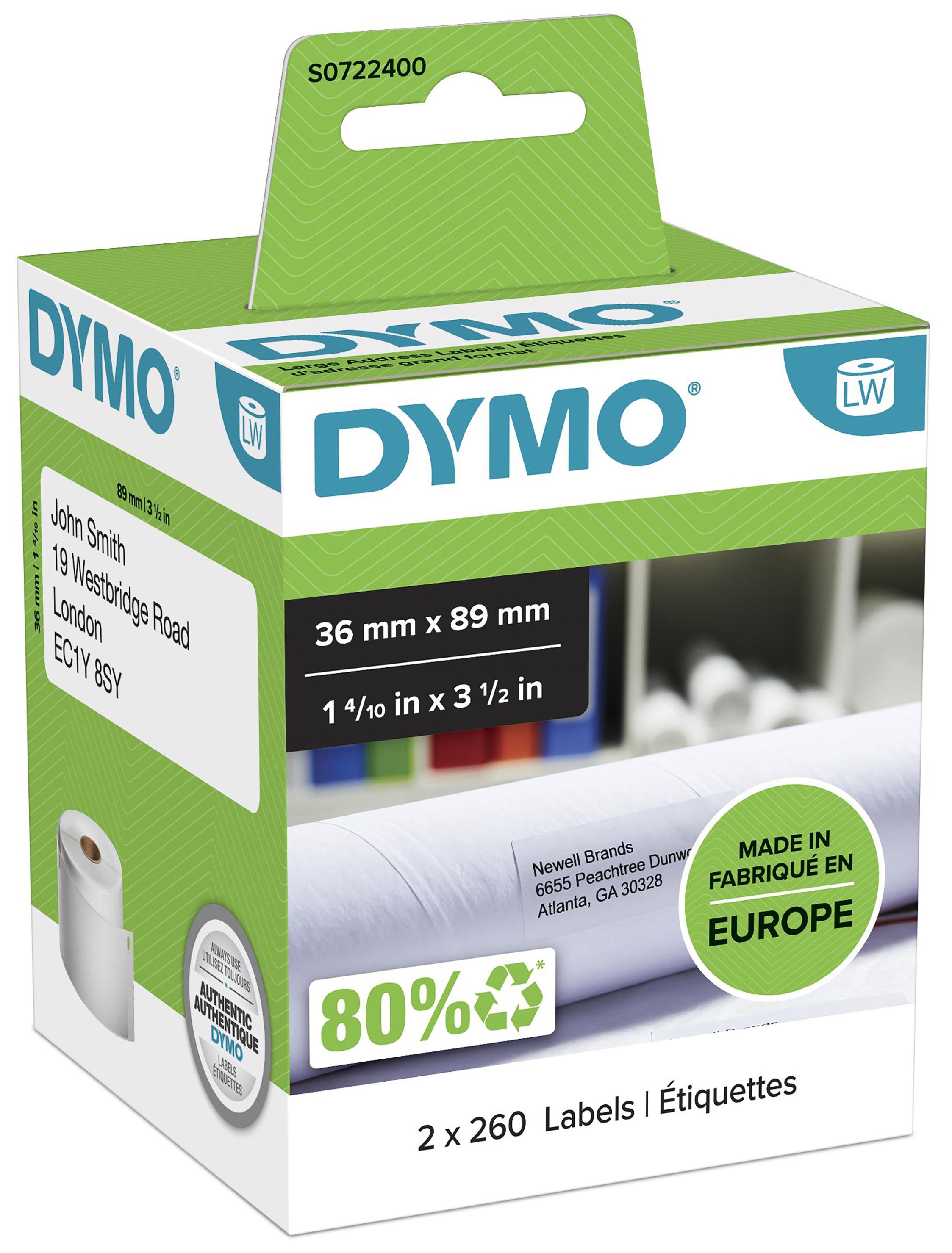 DYMO Original LabelWriter Adressetiketten (Groß) | 36 mm x 89 mm | schwarzer Druck auf weißem Untergrund | 2 Rollen mit je 260 Etiketten (520 Stück) | selbstklebend | für LabelWriter Etikettendrucke (Weiß)