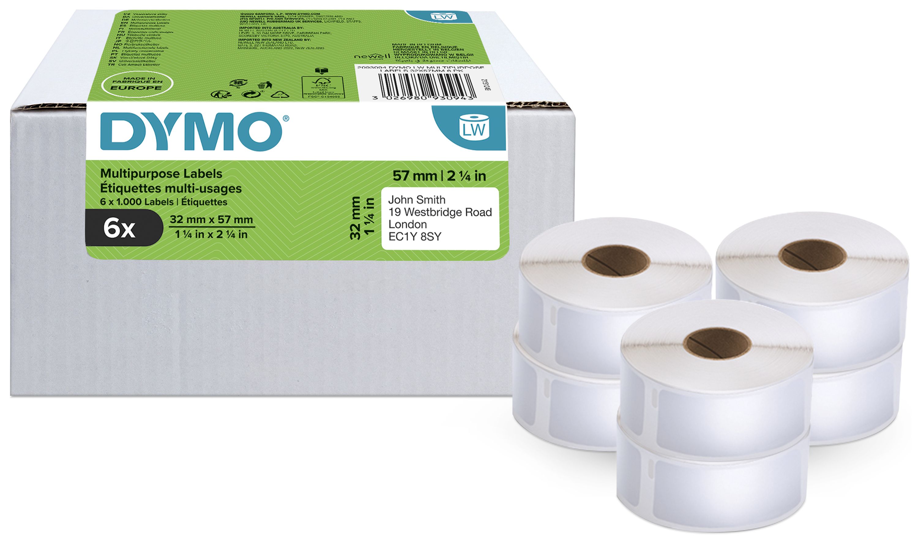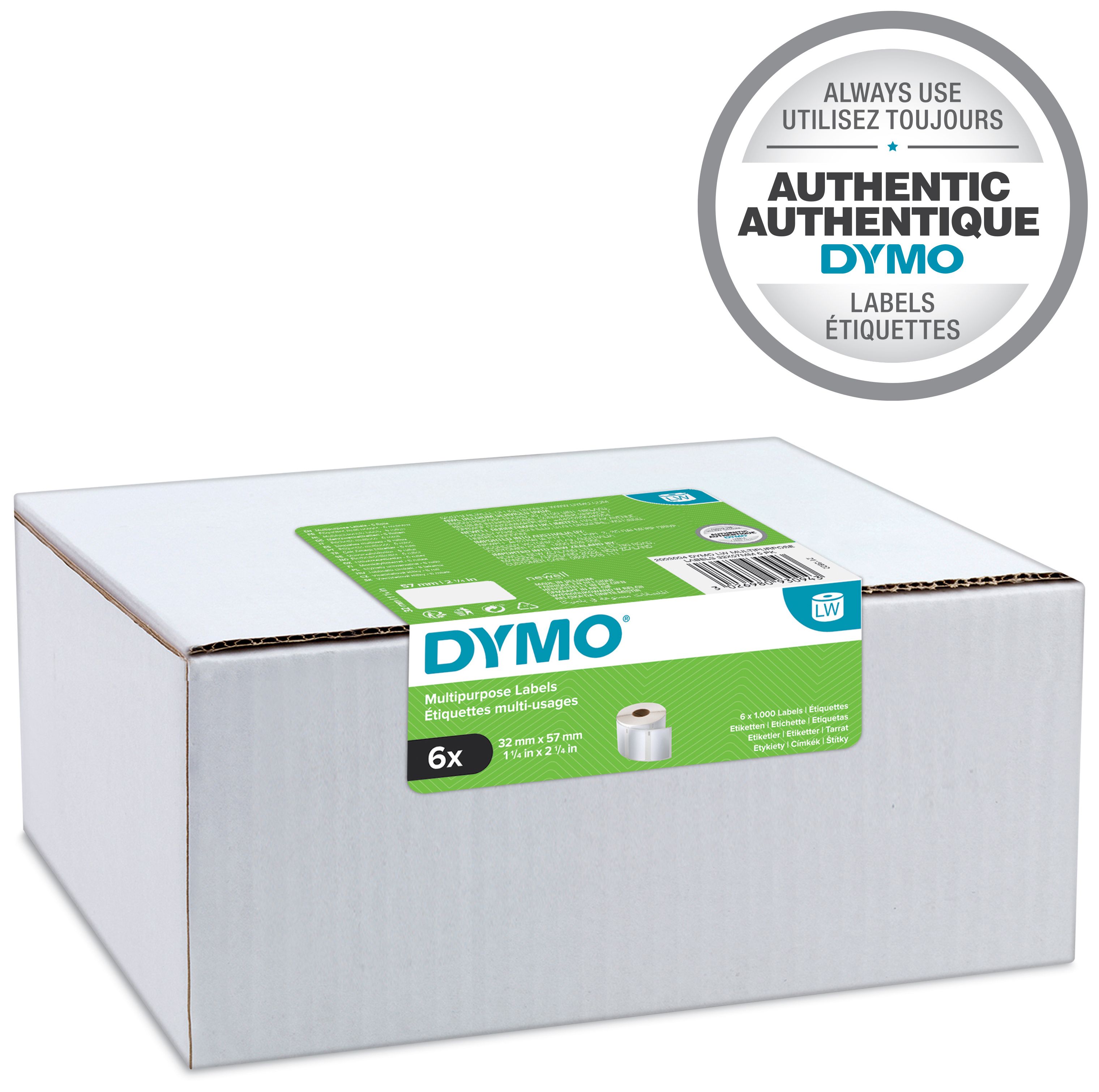 DYMO Original LabelWriter Mehrzwecketiketten | 32 mm x 57 mm | 6 Rollen mit je 1.000 leicht ablösbaren Etiketten (6.000 Etiketten) | selbstklebende Etiketten | für LabelWriter-Beschriftungsgerät (Weiß)