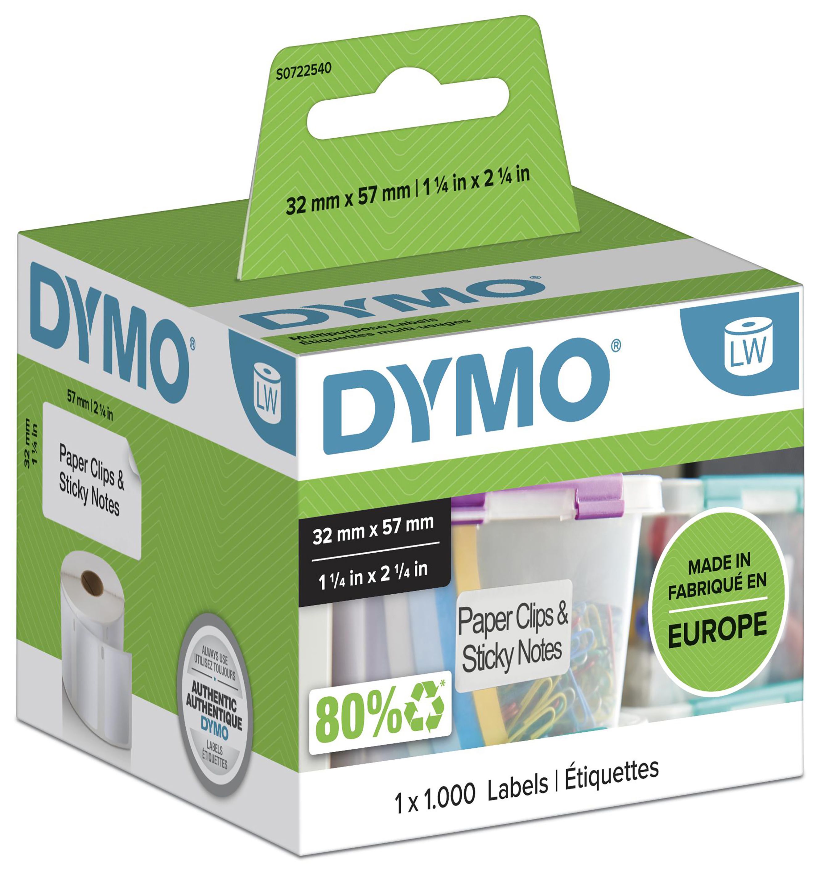 DYMO Original LabelWriter Mehrzwecketiketten | 57 mm x 32 mm | Rolle mit 1.000 leicht ablösbaren Etiketten | selbstklebend | für LabelWriter Etikettendrucker und Beschriftungsgerät