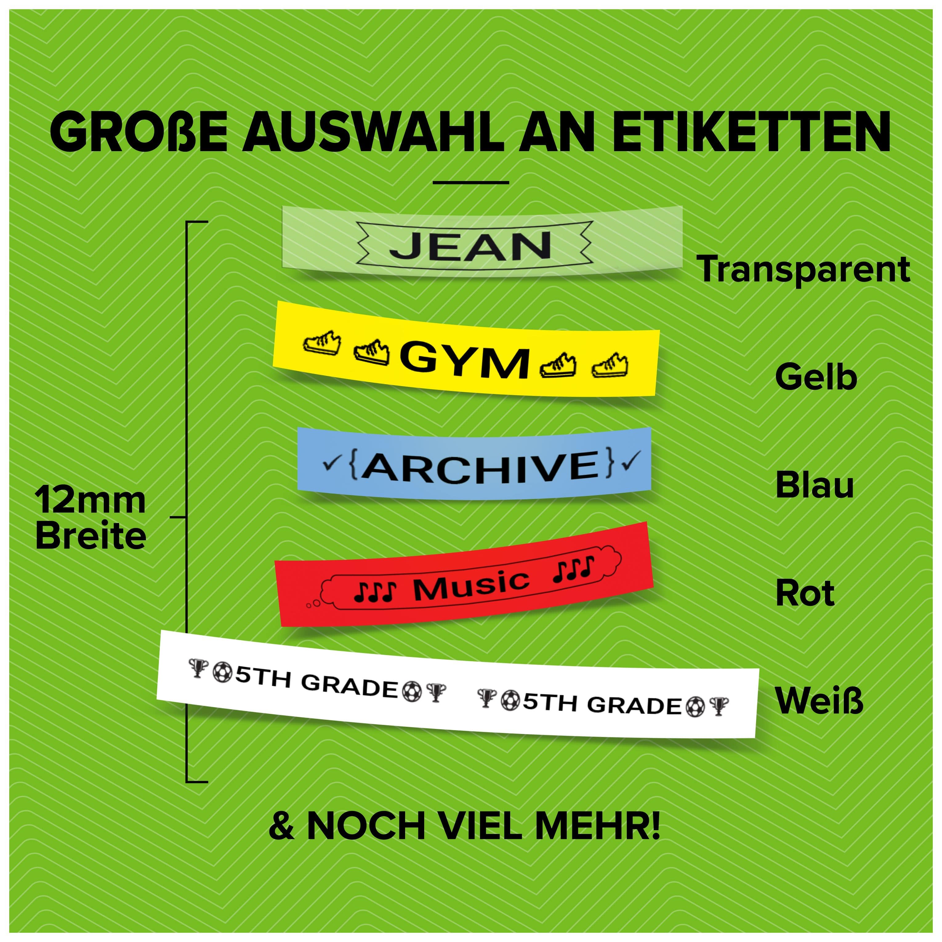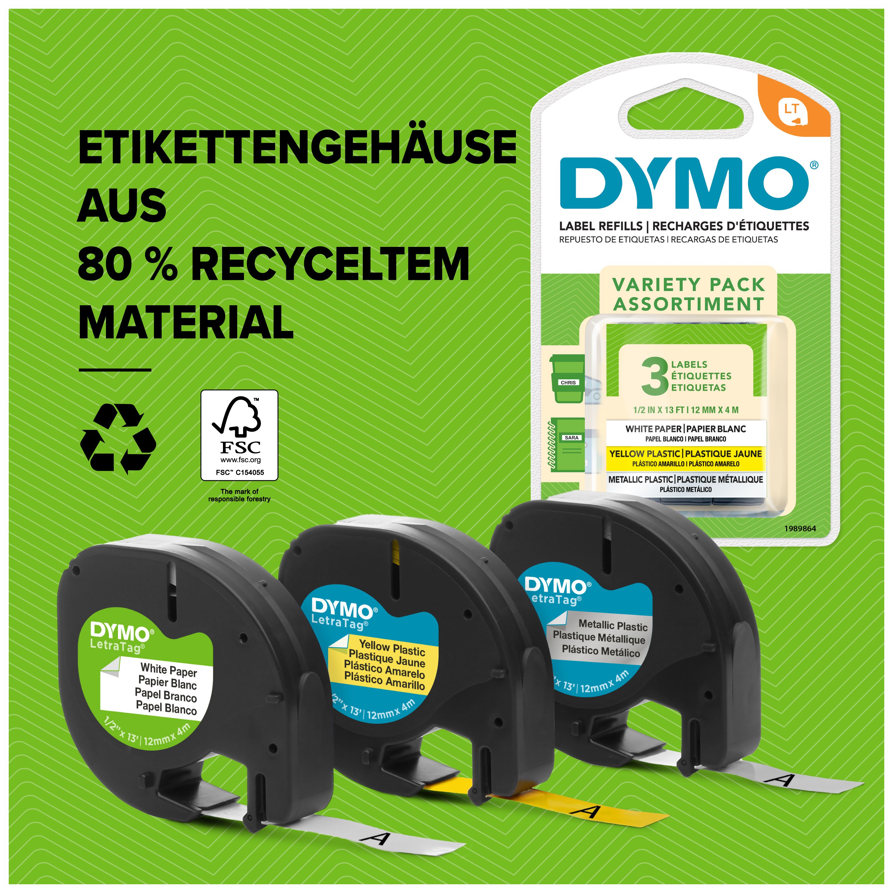 Erstellen Sie leicht lesbare Etiketten, die auf herkömmlichen Oberflächen wie Papier und Glas leicht haften. Dank der Thermodrucktechnologie sind weder Tinte noch Toner erforderlich. Die Kassetten können schnell und bequem ausgetauscht werden, während Sie an einem Projekt arbeiten. Etikettenband für DYMO LetraTag Etikettiergeräte. Zum Erstellen von maximal breiten Etiketten mit Ihrem Etikettiergerät. Dieses Schriftband ist abwaschbar, reißfest, beständig und leicht zu handhaben. Die Kunststoffbänder sind in verschiedenen Farben erhältlich. Hergestellt in Belgien.