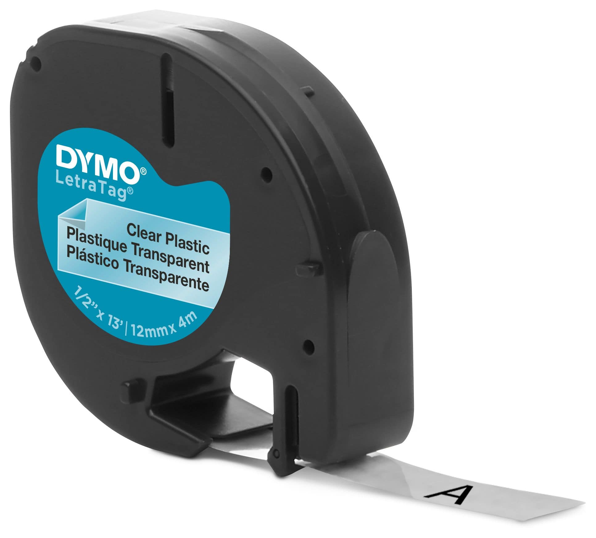 DYMO Original LetraTag Etikettenband | schwarz auf transparent | 12 mm x 4 m | selbstklebendes Kunststoff Schriftband | für LetraTag-Beschriftungsgerät