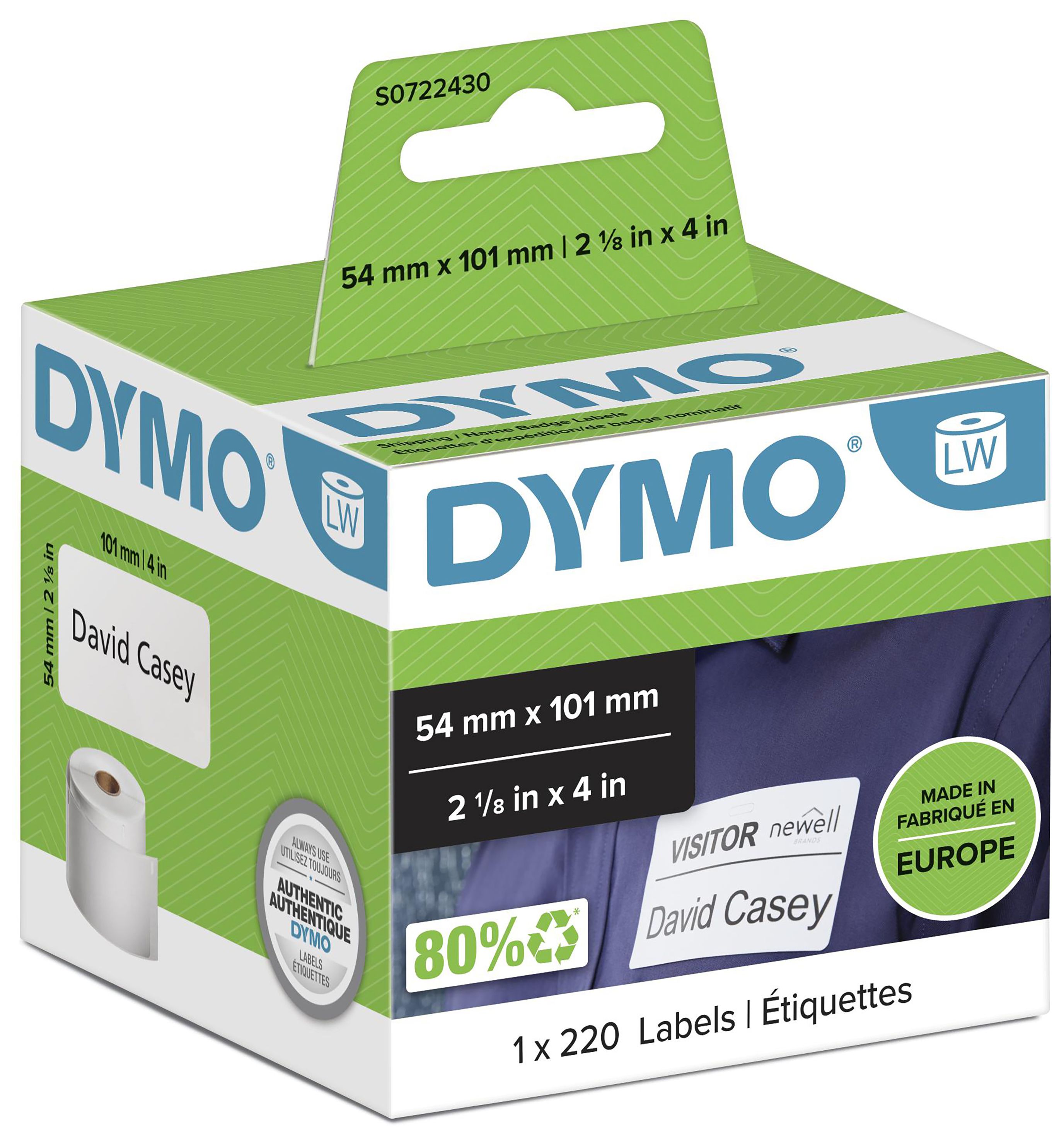 DYMO Orignal LabelWriter Versandetiketten/-Namensschilder (Groß) | 54 mm x 101 mm | Rolle mit 220 leicht ablösbaren Etiketten | selbstklebend | für LabelWriter Etikettendrucker & Beschriftungsgerät (Weiß)