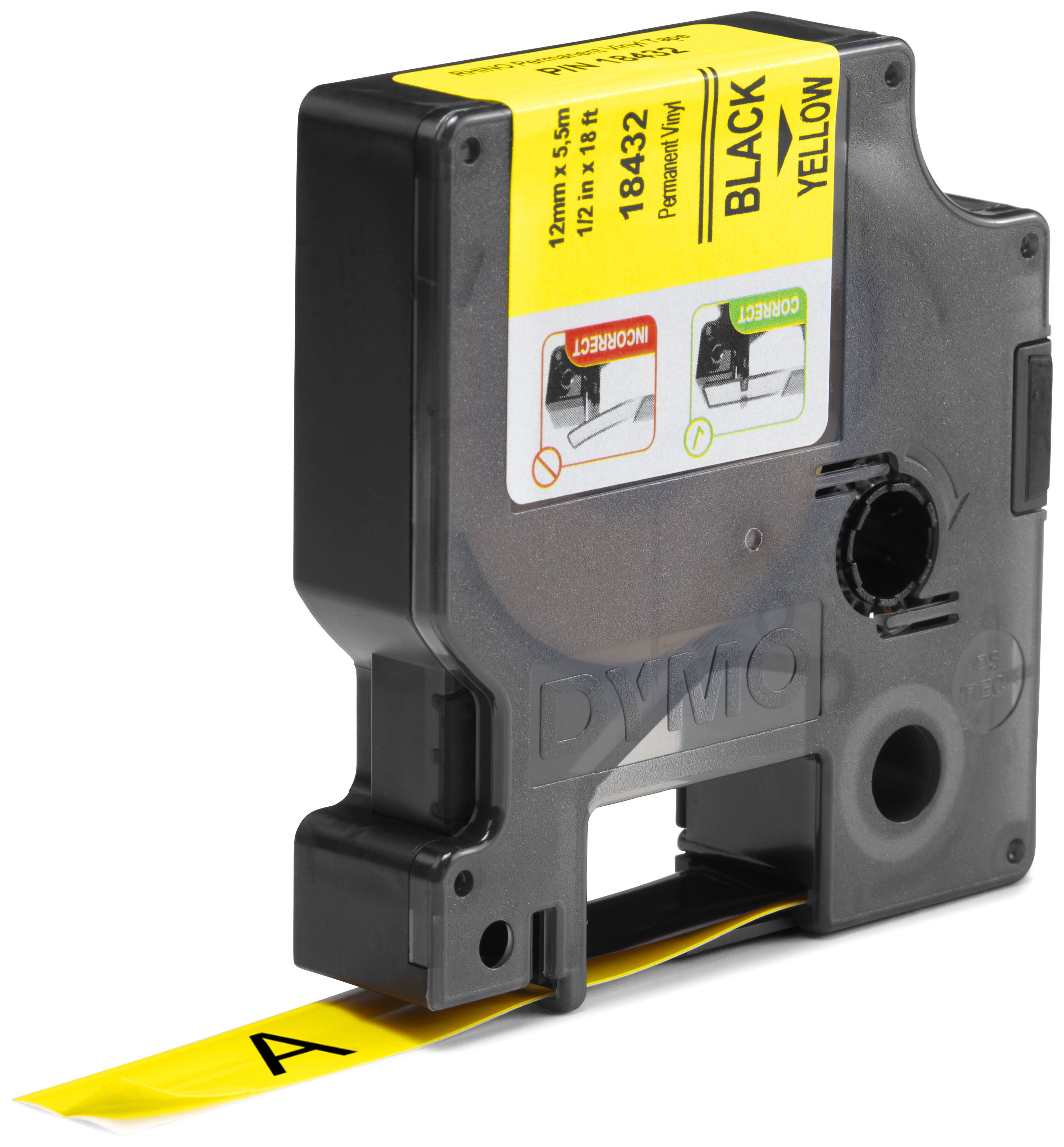 DYMO Rhino-Industrie-Vinyletiketten | 12 mm x 5,5 m | schwarz auf gelb | selbstklebend | für DYMO Rhino und LabelManager Beschriftungsgerät (Mehrfarbig)