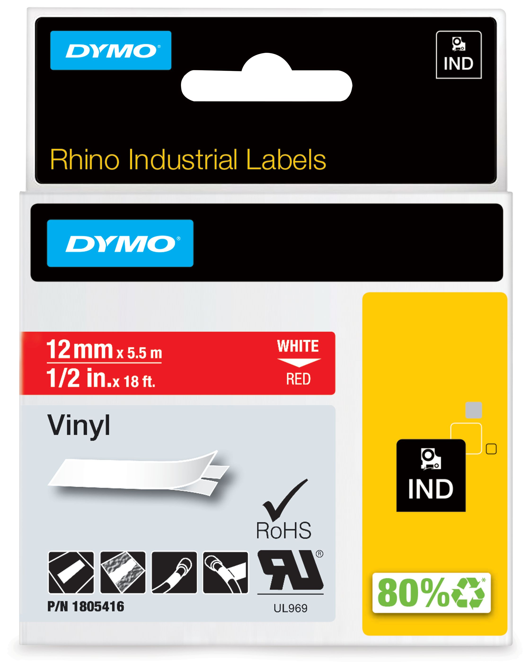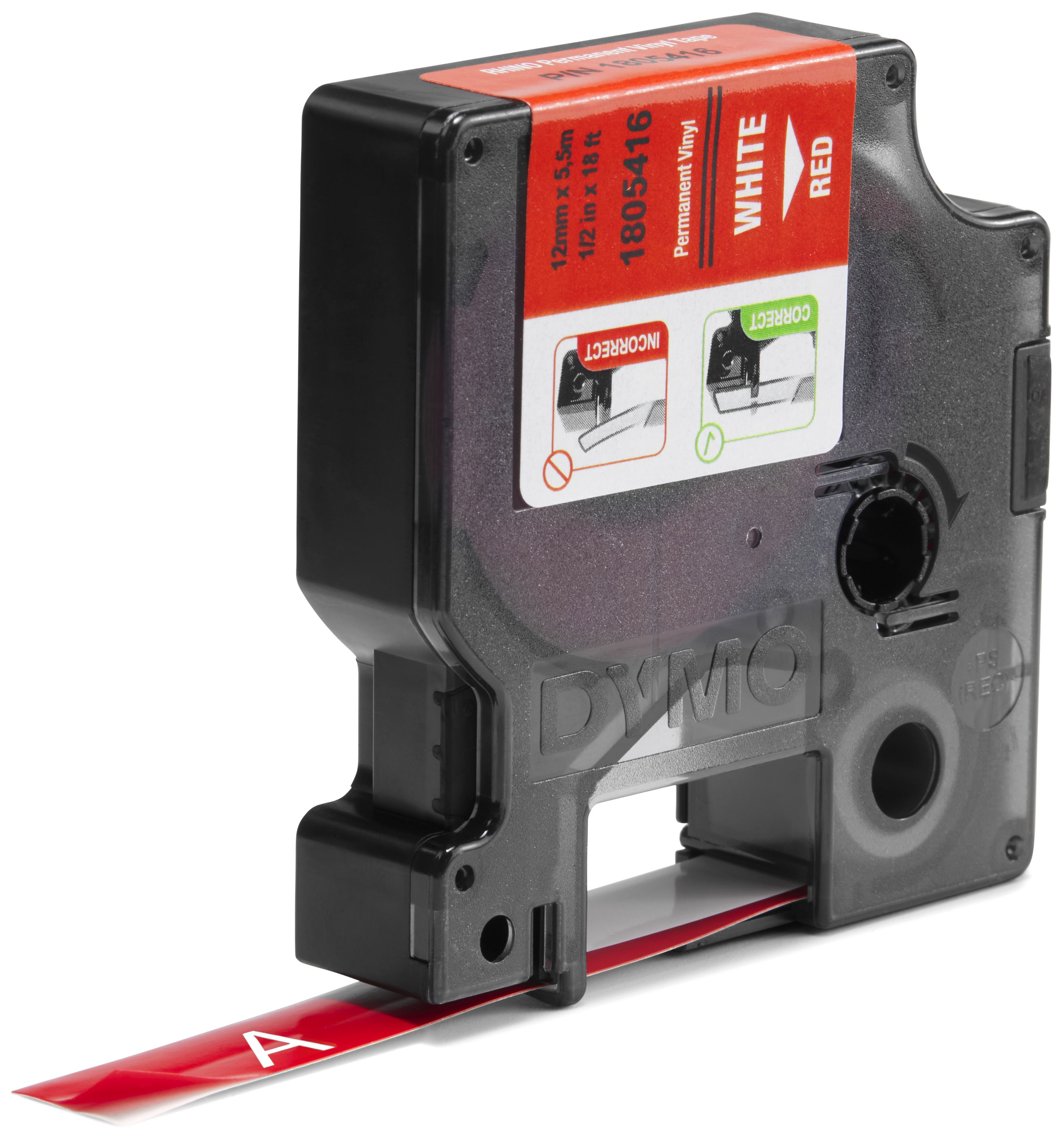 DYMO Rhino-Industrie-Vinyletiketten | 12 mm x 5,5 m | weiß auf rot | selbstklebendes Schriftband | für DYMO Rhino und LabelManager Beschriftungsgerät (Mehrfarbig)