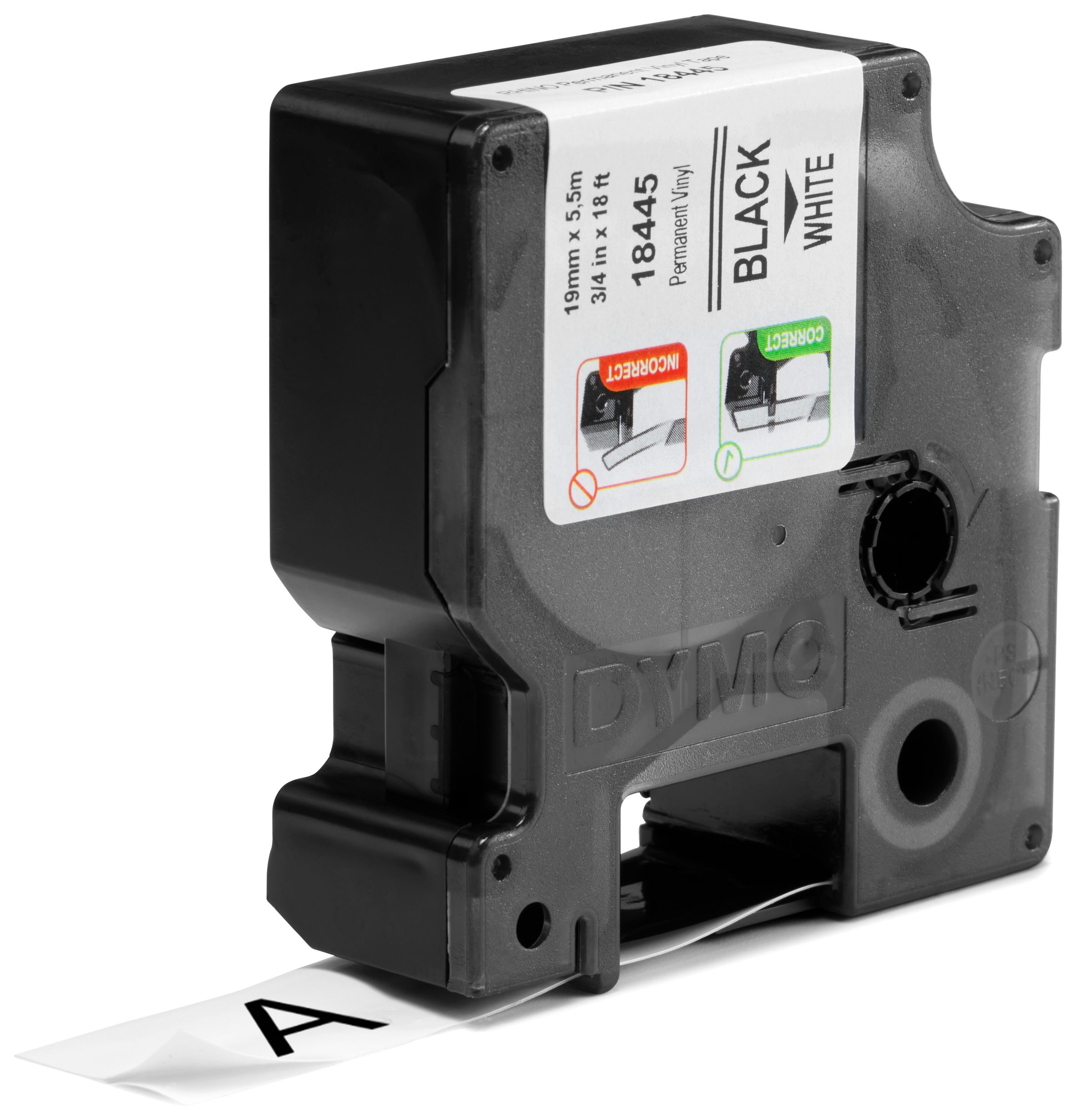 DYMO Rhino-Industrie-Vinyletiketten | 19 mm x 5,5 m | schwarz auf weiß | selbstklebendes Schriftband | für DYMO Rhino und LabelManager Beschriftungsgerät