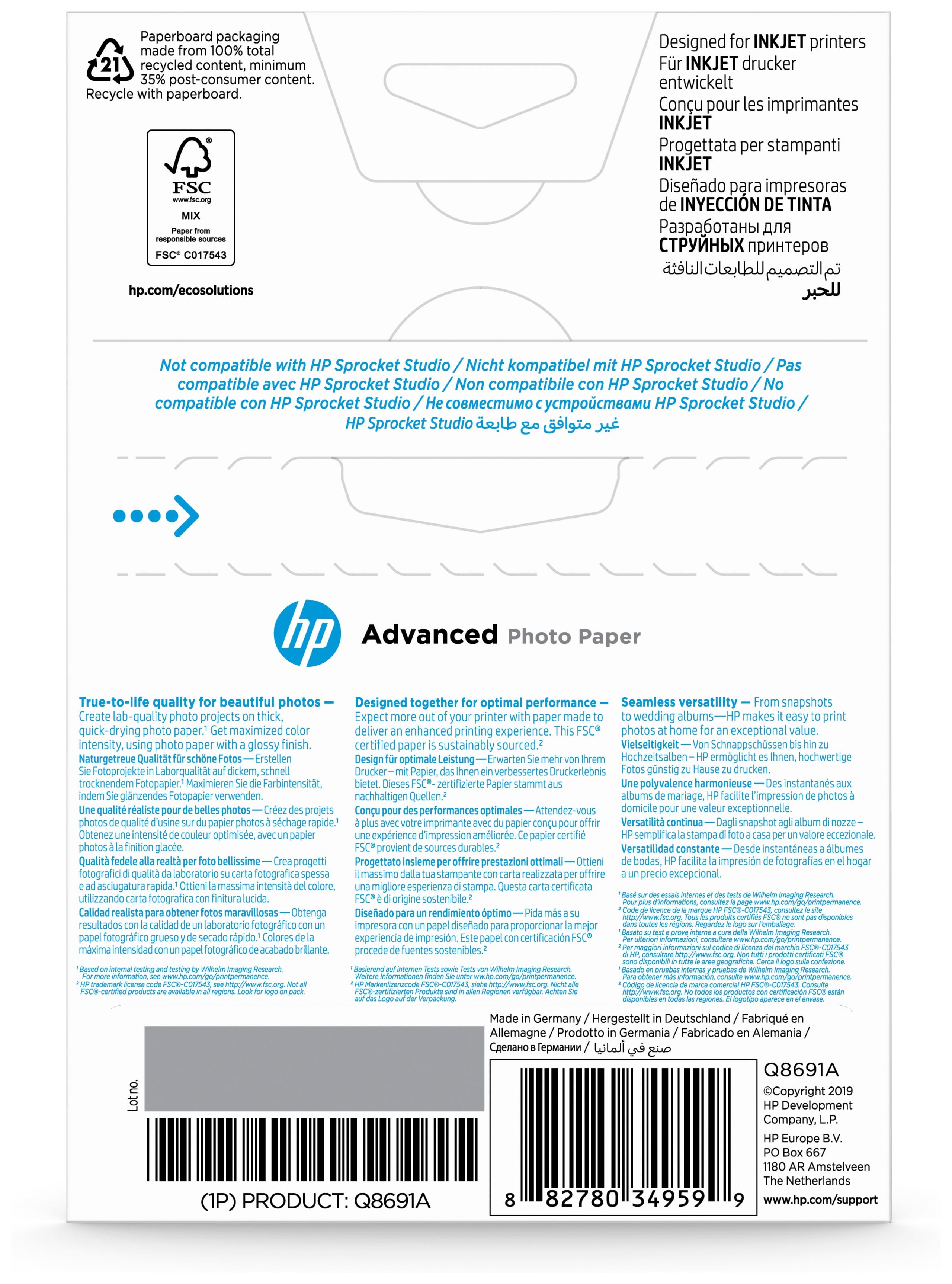 Drucken Sie wunderschöne Fotos, die Sie gerne in der Hand halten und mit anderen teilen. Dieses FSC-zertifizierte[3] Papier ermöglicht naturgetreue Fotos mit satten, lebendigen Farben und einer beeindruckenden Oberfläche. Ihre lichtbeständigen[2] Ausdrucke haben eine glänzende Oberfläche für brillante Fotos.