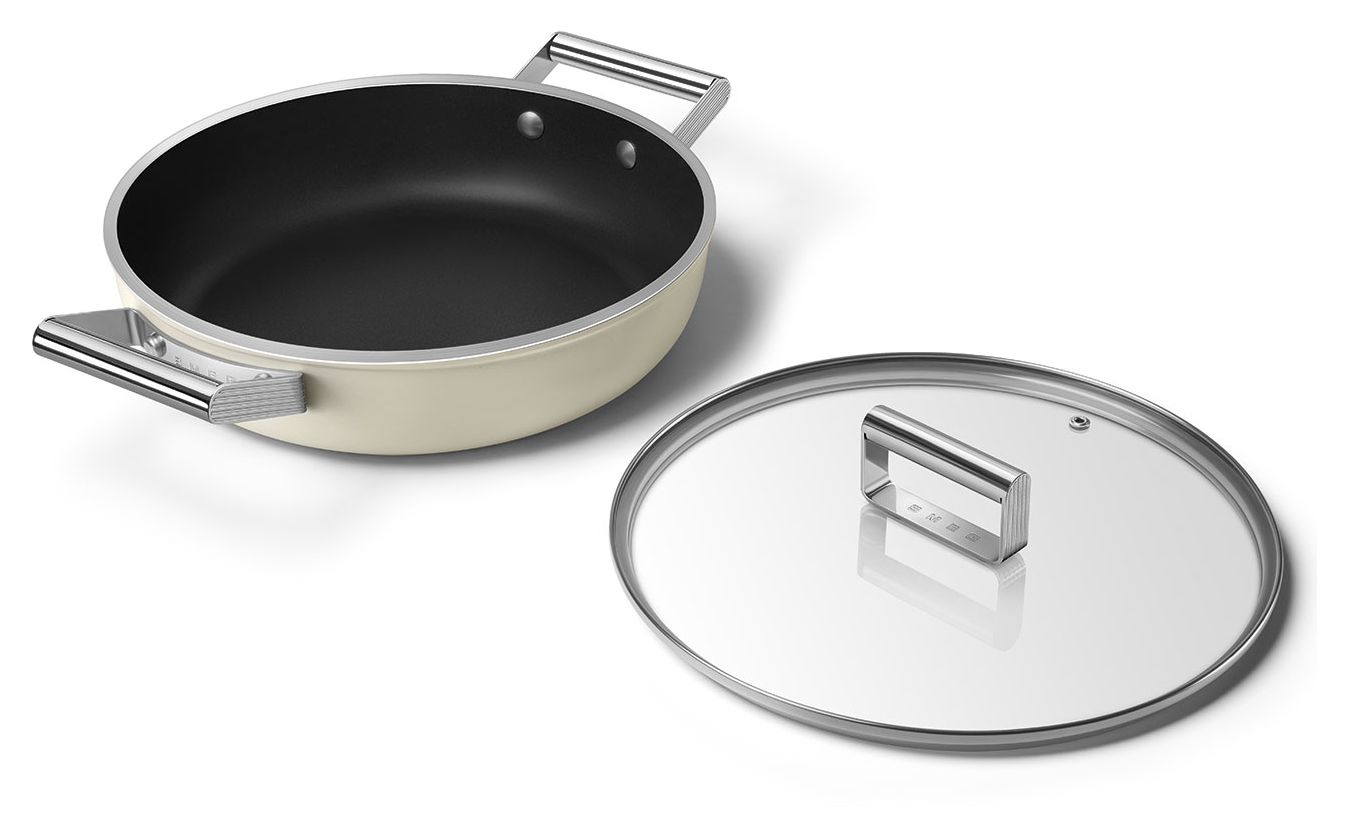 DPF2812CRM Schmorpfanne 50's Style 28 cm Keramik beschichtet für alle Herdplatten und Backöfen bis 250° mit Glas-Deckel