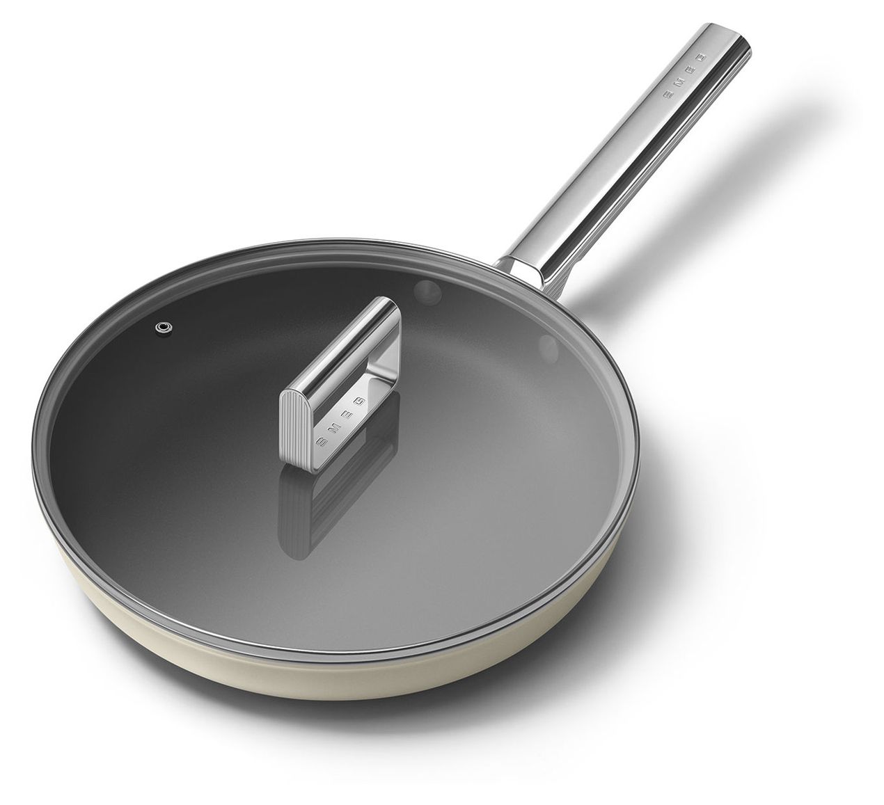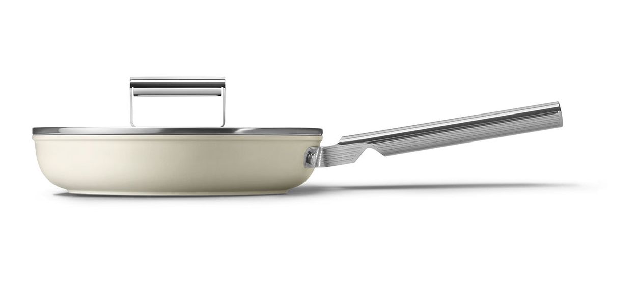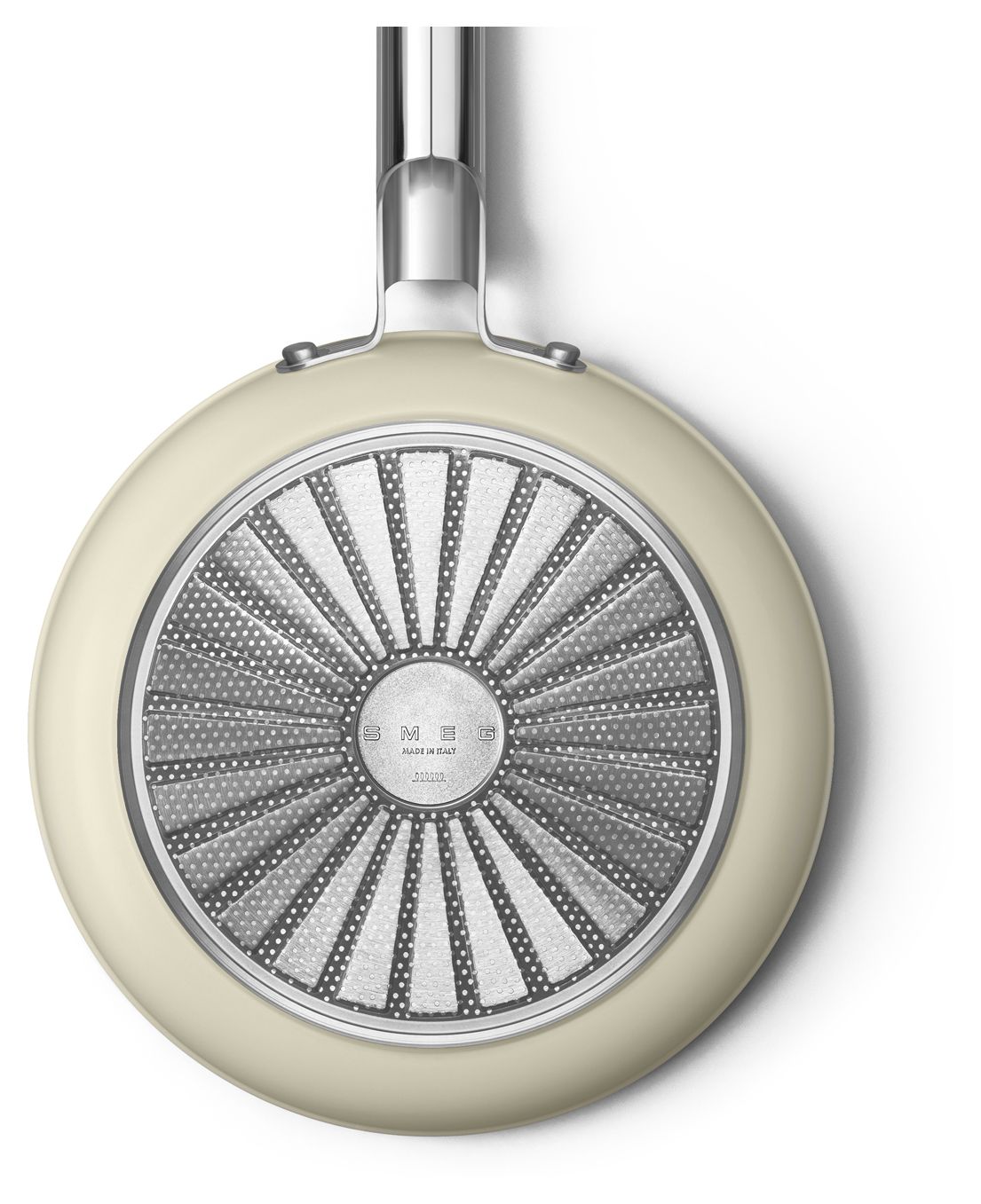 Smeg FPF2002CRM. Innenbeschichtung: Keramik, Temperatur (max): 250 °C, Material: Aluminium, Edelstahl. Durchmesser: 20 cm, Breite: 463 mm, Tiefe: 254 mm. Verpackungsbreite: 500 mm, Verpackungstiefe: 300 mm, Verpackungshöhe: 100 mm. Enthält nicht: Schwermetall, Nickel, PFAS