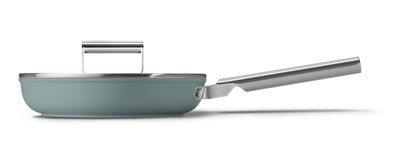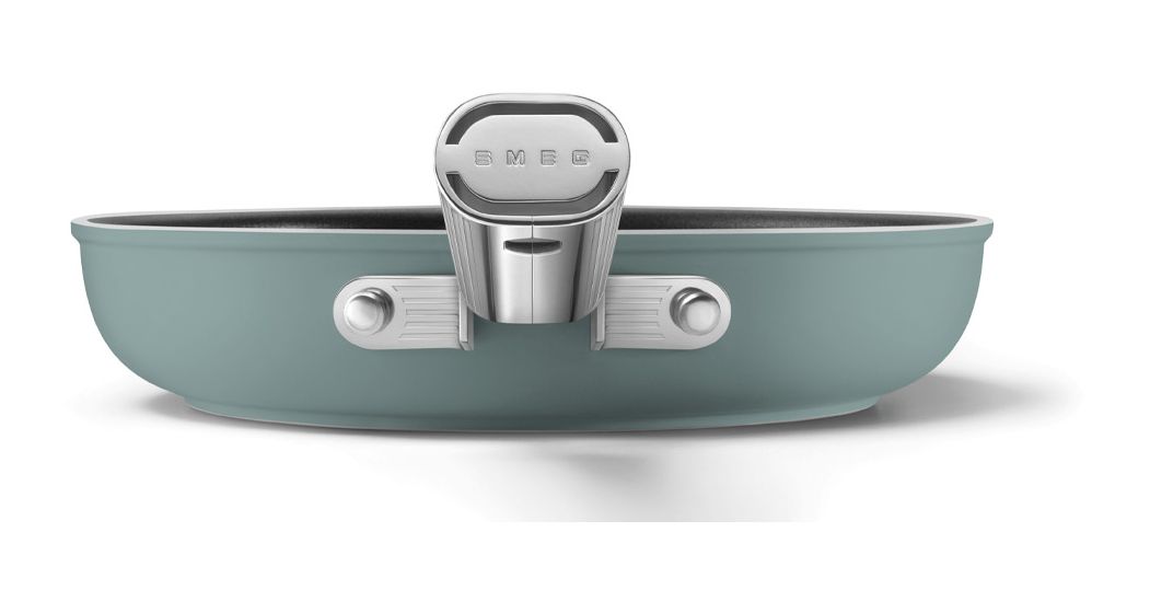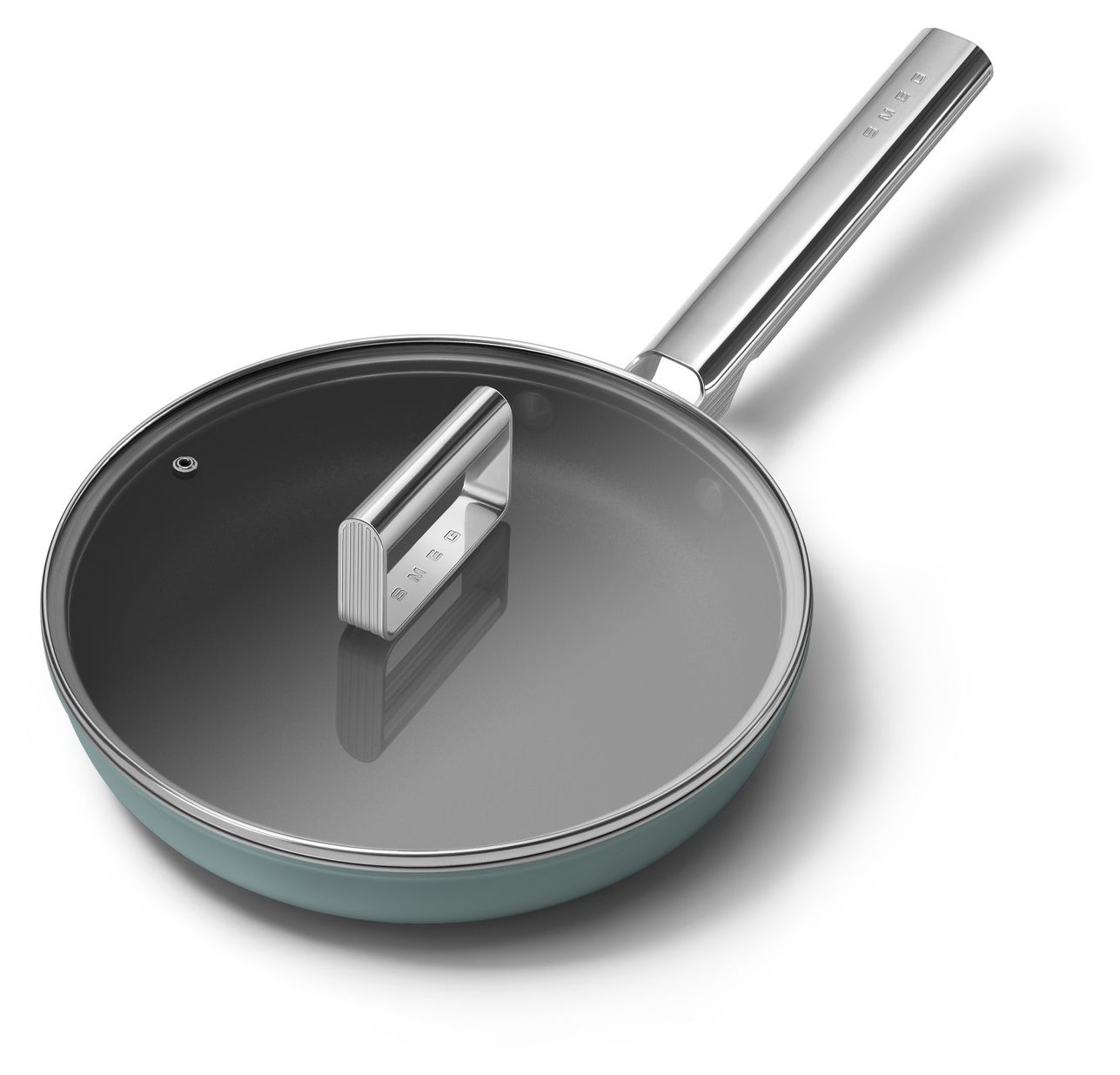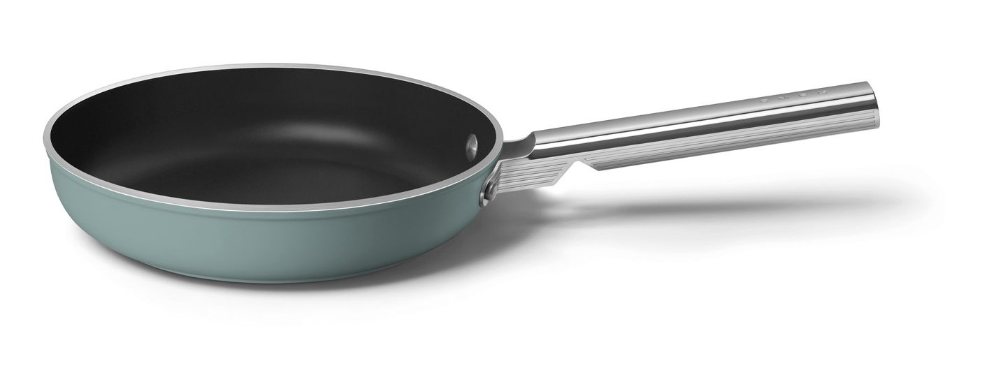 Smeg FPF2402EGM. Produktfarbe: Grün, Innenbeschichtung: Keramik, Temperatur (max): 250 °C. Durchmesser: 24 cm, Breite: 463 mm, Tiefe: 254 mm. Verpackungsbreite: 525 mm, Verpackungstiefe: 319 mm, Verpackungshöhe: 109 mm. Enthält nicht: Schwermetall, Nickel, PFAS