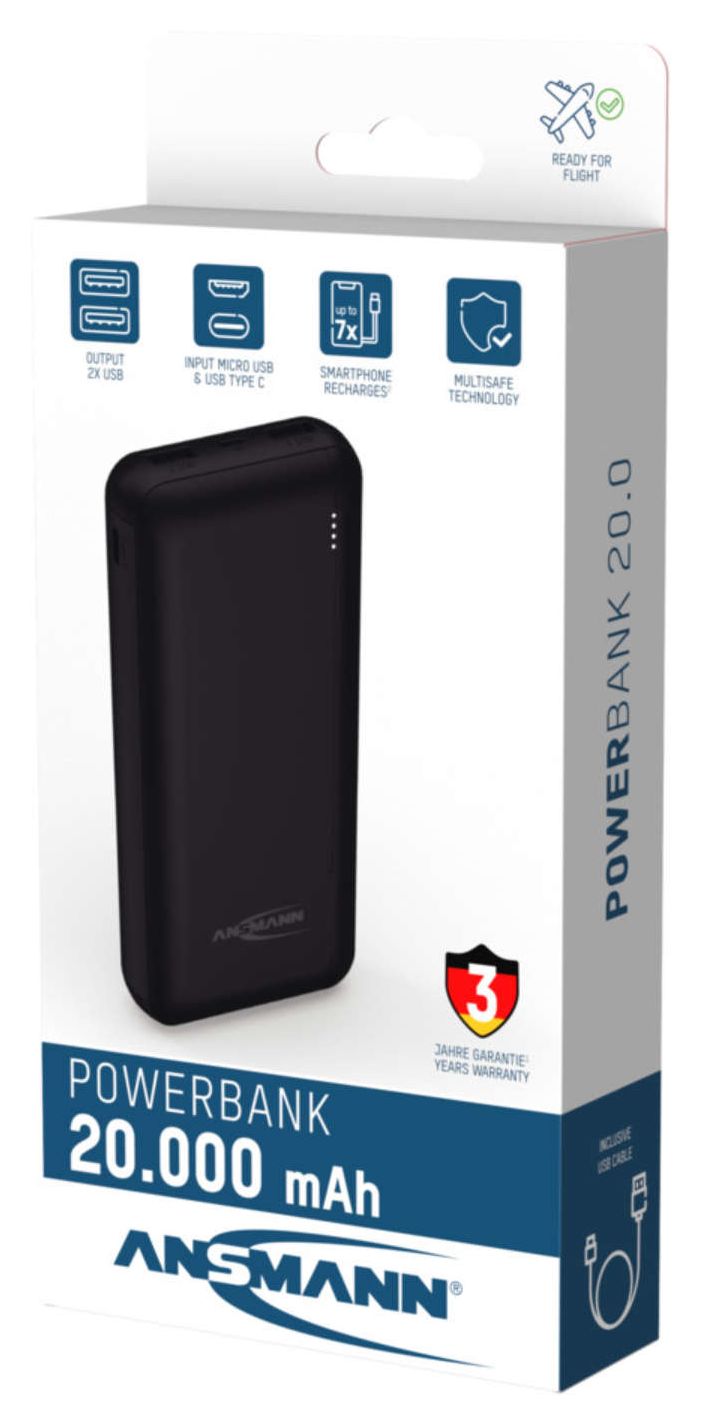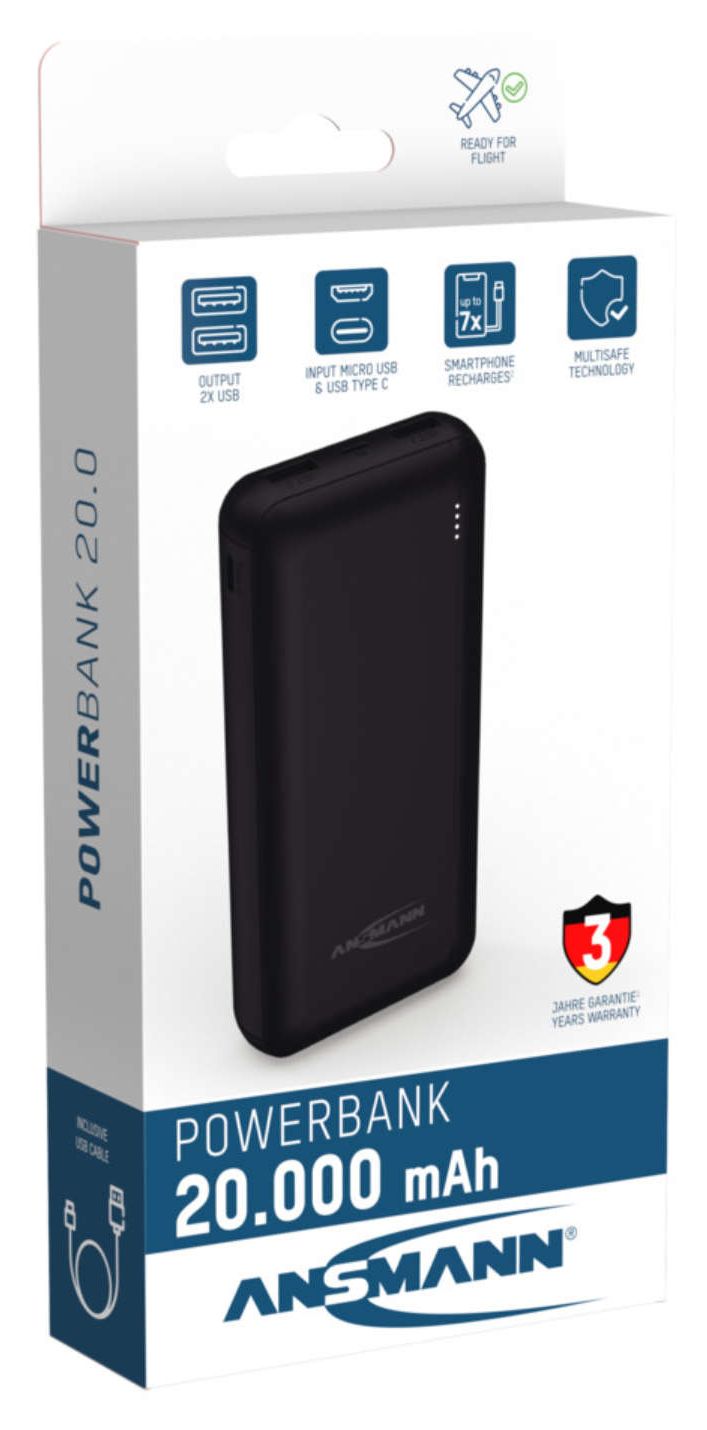 Dieses Problem gehört nun der Vergangenheit an, denn die praktische Powerbank von ANSMANN im eleganten Design ist leicht, kraftvoll und immer dabei. Aufgrund der kompakten Bauweise findet der leichte Stromspeicher in jeder Jacken-, Hosen- oder Handtasche Platz. Ausgestattet mit dem USB auf Micro-USB-Ladekabel ist das Produkt der ideale Begleiter für unterwegs. Die ANSMANN Powerbank hat neben zwei USB Ports einen Micro USB Port integriert. Über die USB-Anschlüsse wird Energie über ein für Ihr Smartphone und/oder Tablet passendes Ladekabel abgegeben. Über den Micro-USB-Anschluss kann der Akku ganz bequem am PC oder mit einem handelsüblichen USB Ladegerät an der Steckdose wieder aufgeladen werden.