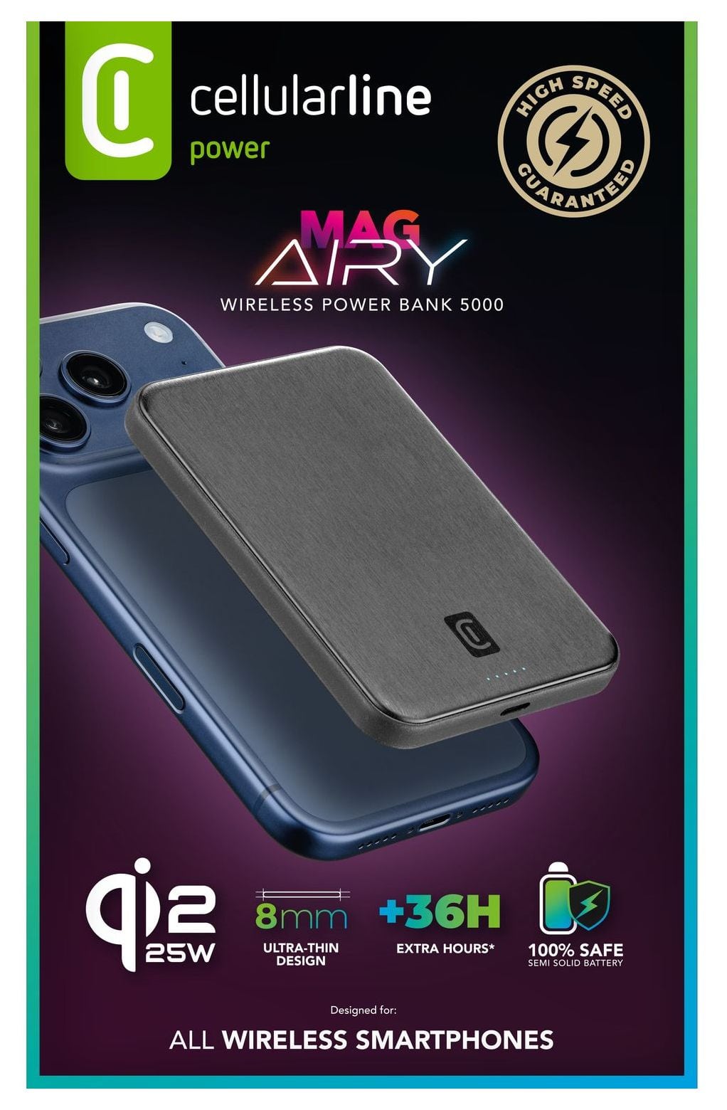 Die Power Bank Mag Airy gehört zu den ersten Powerbanks auf dem Markt mit Semi-Solid-Batterien der nächsten Generation, die maximale Sicherheit und ein überlegenes Thermomanagement gewährleisten.Mit nur 8 mm Dicke ist sie die dünnste Powerbank aller Zeiten – ohne Kompromisse bei der Leistung.Die Qi2-Zertifizierung mit 25W ermöglicht schnelles, effizientes und perfekt magnetisch ausgerichtetes kabelloses Laden. Zusätzlich bietet der USB-C Power Delivery Port mit 20W schnelles und flexibles Laden per Kabel. Das hochwertige brushed-black Finish und die LED-Anzeigen runden das Produkt ab