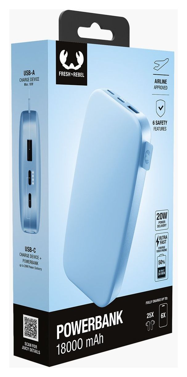 Alle Fresh 'n Rebel Powerbanks sind mit 6 Sicherheitsfunktionen ausgestattet, die gewährleisten, dass alle deine Geräte sicher sind. Die 6 Sicherheitsfunktionen schützen deine Geräte vor Überspannung, Überstrom, Überhitzung, Überladung, Überentladung und Kurzschluss. Diese Ladegeräte im Taschenformat sind auch für Flugreisen geeignet, denn sie sind nach UN38.3 für Fluggesellschaften zugelassen.