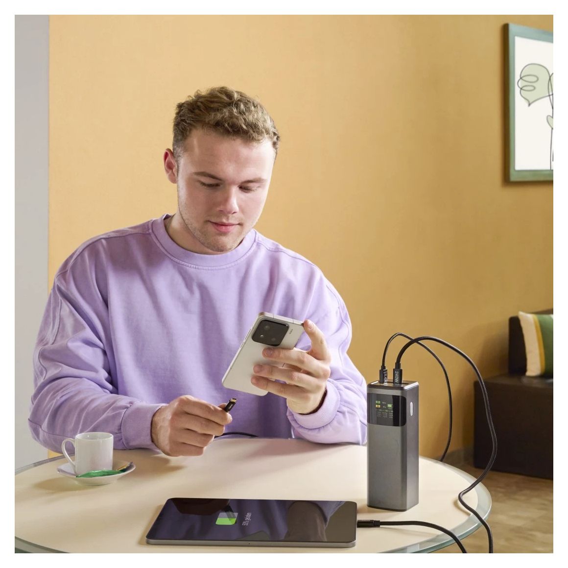 Akku leer und keine Steckdose verfügbar? Das Kraftpaket "High Power" betankt überall und jederzeit Laptop, Tablet, Smartphone, Smartwatch und Bluetooth-Lautsprecher mit neuer 65 Watt starken Power. "High Power" – der Grand Slam unter den Power Packs.