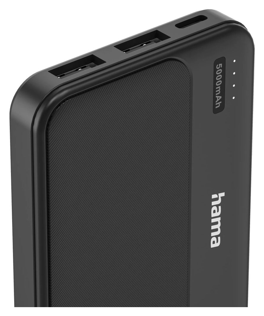 Hama Pocket 5. Akku-/Batteriekapazität: 5000 mAh, Akku-/Batterietechnologie: Lithium Polymer (LiPo). USB-Typ-A-Ausgangsports: 2, USB Typ-C Anzahl Anschlüsse: 1. Ausgangsstrom: 2,1 A. Produktfarbe: Anthrazit