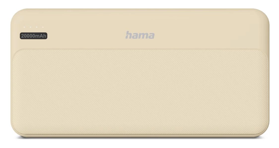 Hama Pocket 20. Akku-/Batteriekapazität: 20000 mAh, Akku-/Batterietechnologie: Lithium Polymer (LiPo). USB-Typ-A-Ausgangsports: 2, USB Typ-C Anzahl Anschlüsse: 1. Ausgangsstrom: 2,1 A. Produktfarbe: Sand