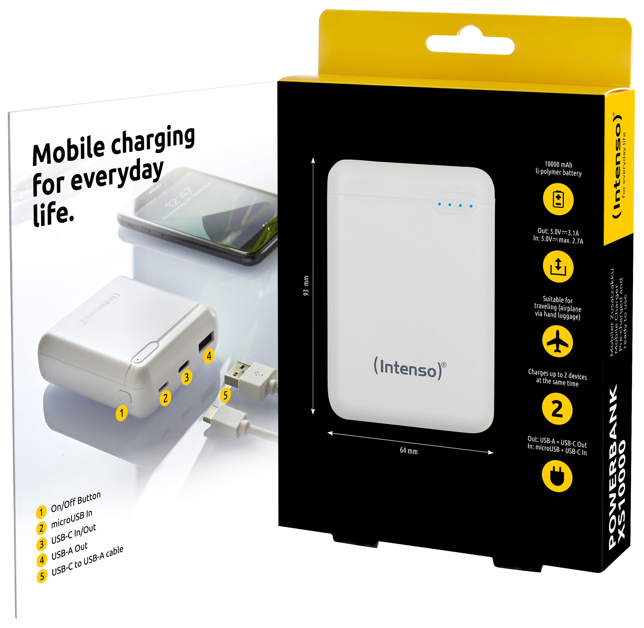 XS 10000 mAh Powerbank Micro-USB + USB Type-C (Weiß)