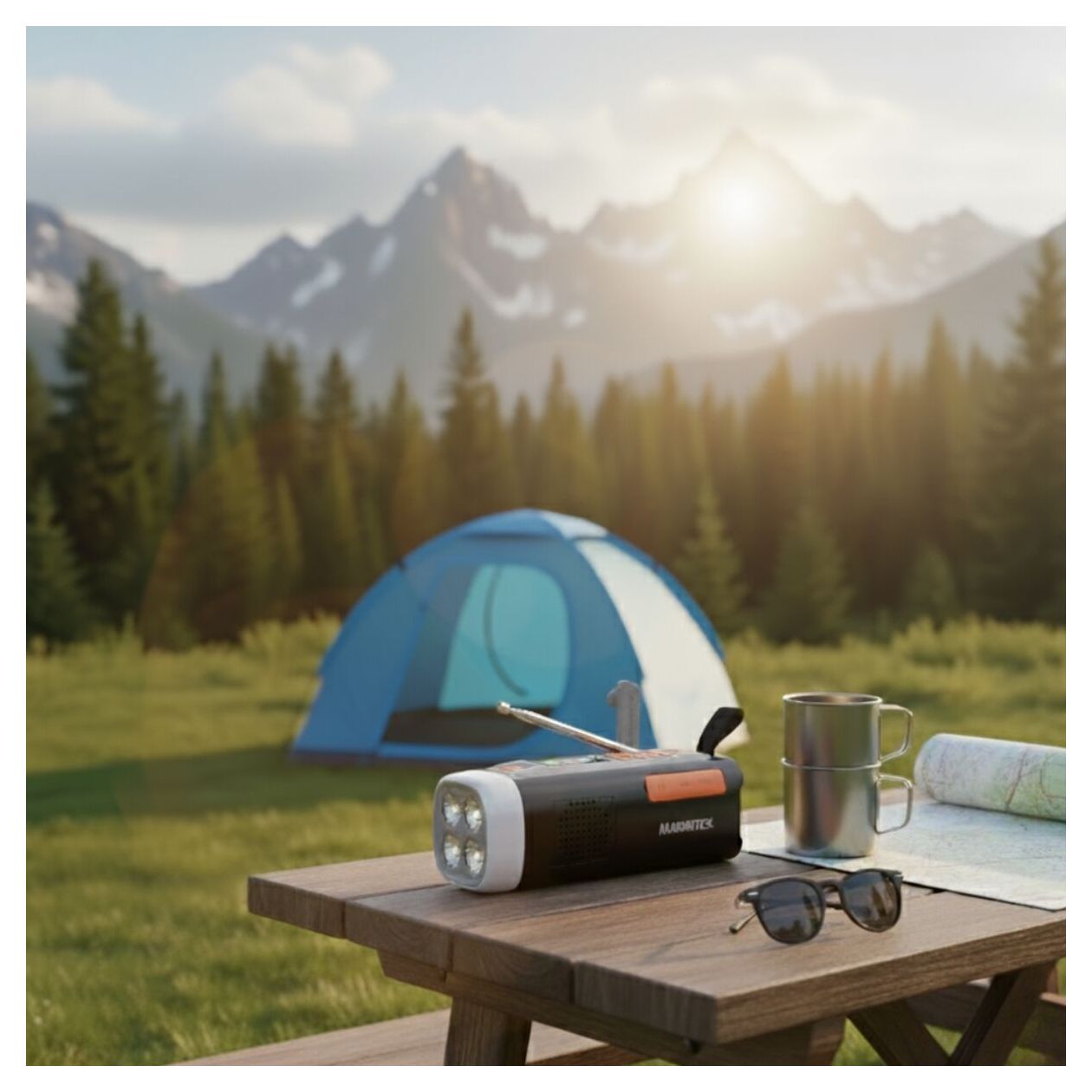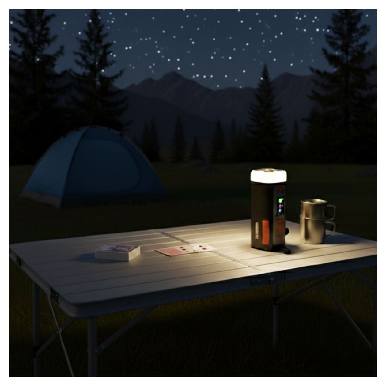 Mit einer dimmbaren Taschenlampe und einer leistungsstarken 360° Campinglampe haben Sie immer die richtige Beleuchtung. Die Campinglampe verteilt Licht rundum – ideal im Zelt oder draußen. In Notfällen aktivieren Sie die SOS-Funktion mit Lichtsignalen und Sirene.