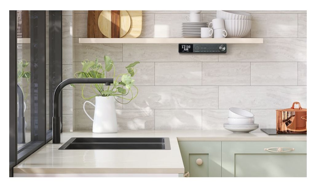 Mit diesem DAB+ Premium Küchenradio sind in Deiner Küche nicht nur die Zutaten frisch, sondern auch die Hits! Die PLL-UKW-Technologie versorgt Dich beim Kochen mit einer bunten Mischung aus Nachrichten, Charts oder auch Wissenssendungen. Die Auswahl ist nicht nach Deinem Geschmack? Über DAB+ empfängst Du auch eine große Auswahl an digitalen Radiosendern – alles natürlich in hervorragender Tonqualität. Du willst lieber selbst bestimmen, was Du hörst? Fix über Bluetooth verbunden wählst Du Deine Hits über Smartphone oder Tablet aus. Den perfekten Platz findet das Küchenradio zum Beispiel unter einem Küchenschrank oder auch auf Deinem Tisch. Für die perfekte Stimmung beim Kochlöffel schwingen sorgt die feine LED-Beleuchtung, die Deine Lebensmittel so richtig in Szene setzt. Und weil das noch nicht alles ist: zwei Alarmzeiten mit vier Alarmprogrammen helfen Dir ja nichts anbrennen zu lassen.