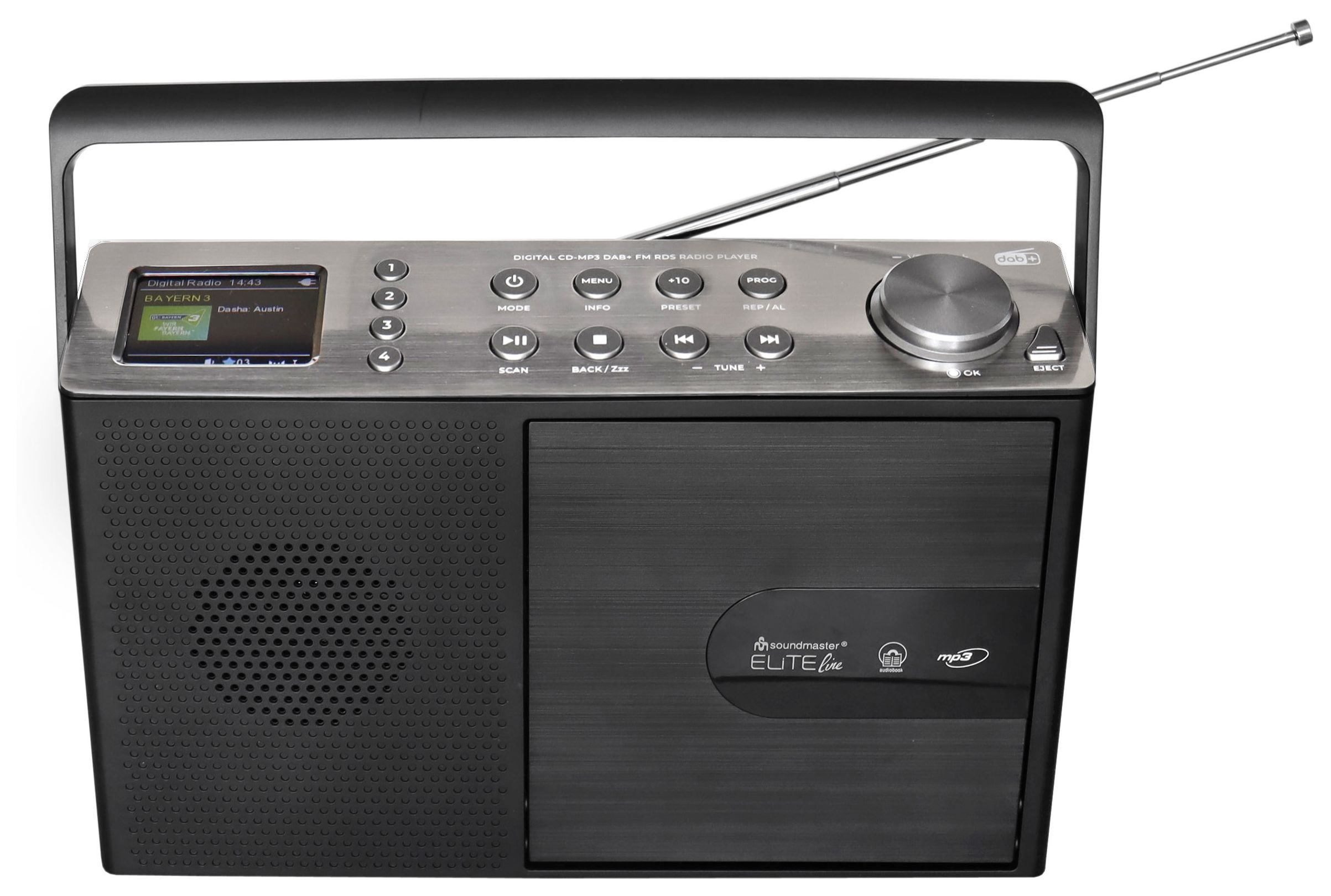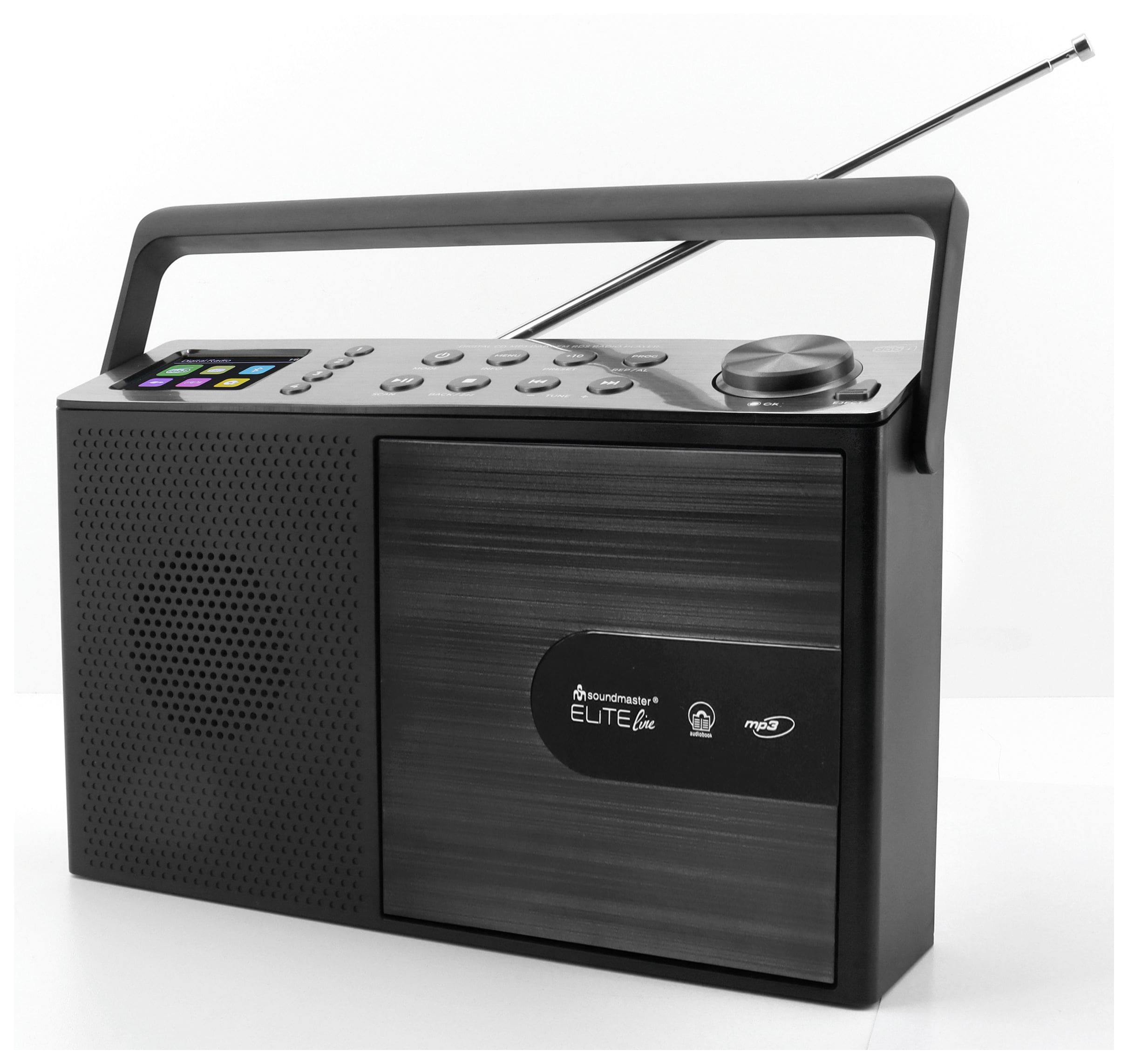 Soundmaster RCD1190SW. Radiotyp: Tragbar, Tunertyp: Analog & Digital, Unterstützte Bänder: DAB+, FM. RMS-Leistung: 3 W. Kopfhörer-Anschluss: 3,5 mm. Produktfarbe: Schwarz. Akku-/Batterietyp: LR14, Akku-/Batteriespannung: 6 V