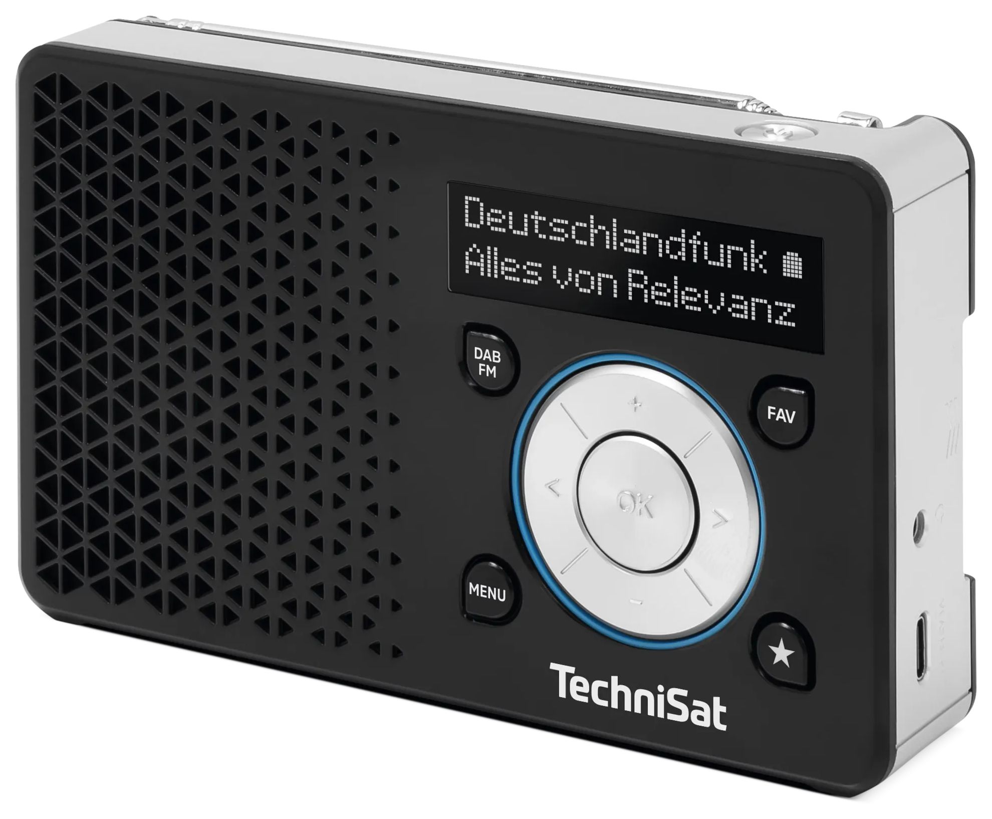 Portable, DAB+/UKW-Radio, OLED, ASA-Warnfunktion, 1 W (RMS), Lithium-Ionen 3,7 V 1050 mAh, Schwarz/Silber