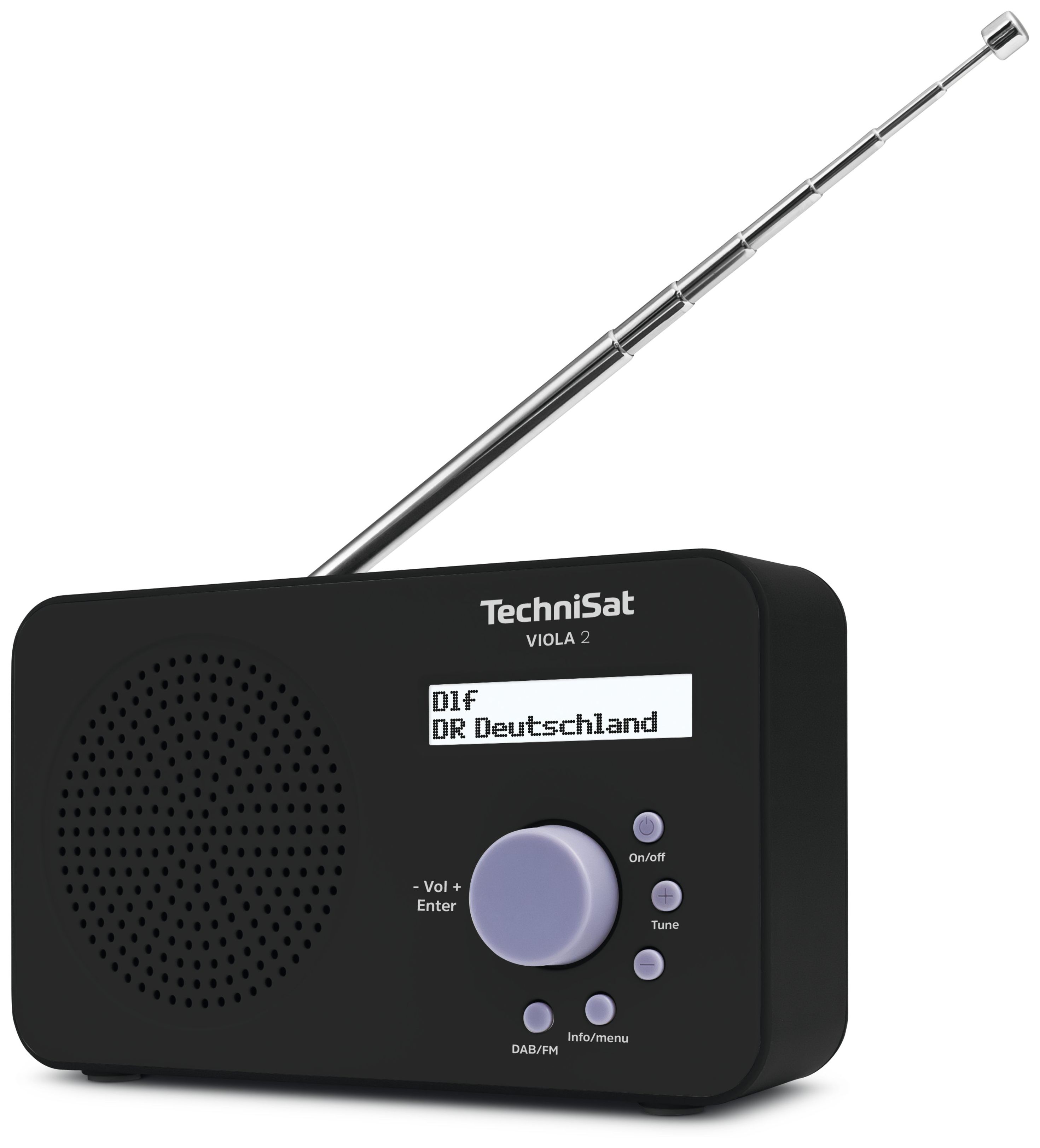 TechniSat VIOLA 2. Radiotyp: Tragbar, Tunertyp: Analog & Digital, Unterstützte Bänder: DAB+, FM. RMS-Leistung: 1 W. Lautsprechertyp: 1-Weg. Display-Typ: LCD. Kopfhörer-Anschluss: 3,5 mm