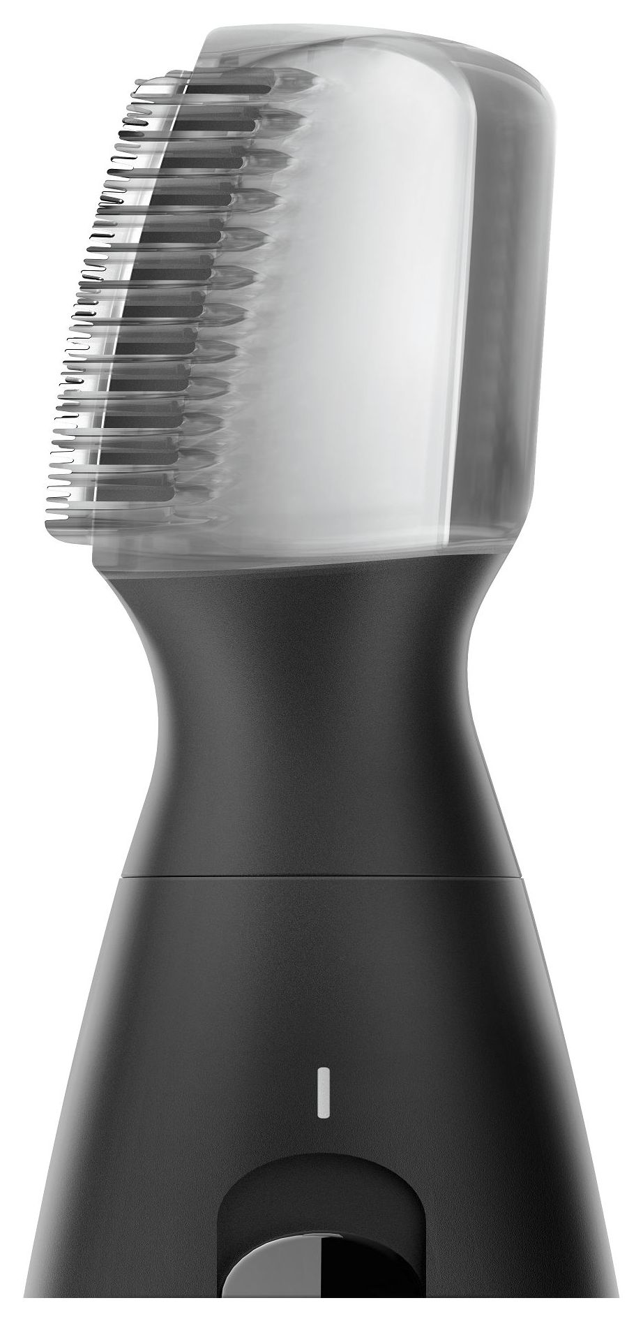 Besonders kleiner Kopf für exakte Formen und Konturen. Außerdem können Sie so auch in schwer erreichbaren Bereichen trimmen, wie unter der Nase oder am Kinn
