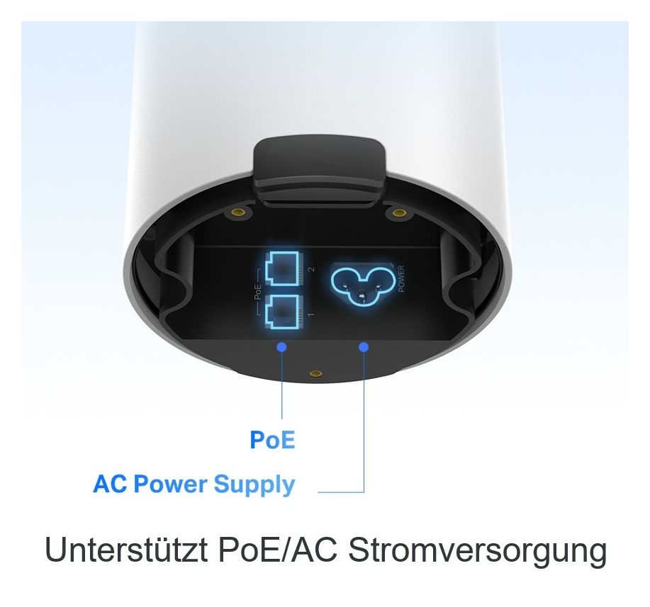 TP-Link Deco X50-Outdoor. Produktfarbe: Weiß, Antennentyp: Intern, Produkttyp: Mesh-System. WLAN-Band: Dual-Band (2,4 GHz/5 GHz), Top WLAN-Standard: Wi-Fi 6 (802.11ax), WLAN-Standards: Wi-Fi 6 (802.11ax). Virtueller Assistent: Amazon Alexa & Google Assistant, Cloud-Services unterstützt: TP-Link ID. AC Eingangsspannung: 100-240 V, AC-Adapter Eingangsstrom: 0,5 A, AC Eingangsfrequenz: 50/60 Hz. Zertifizierung: CE, FCC, RoHS