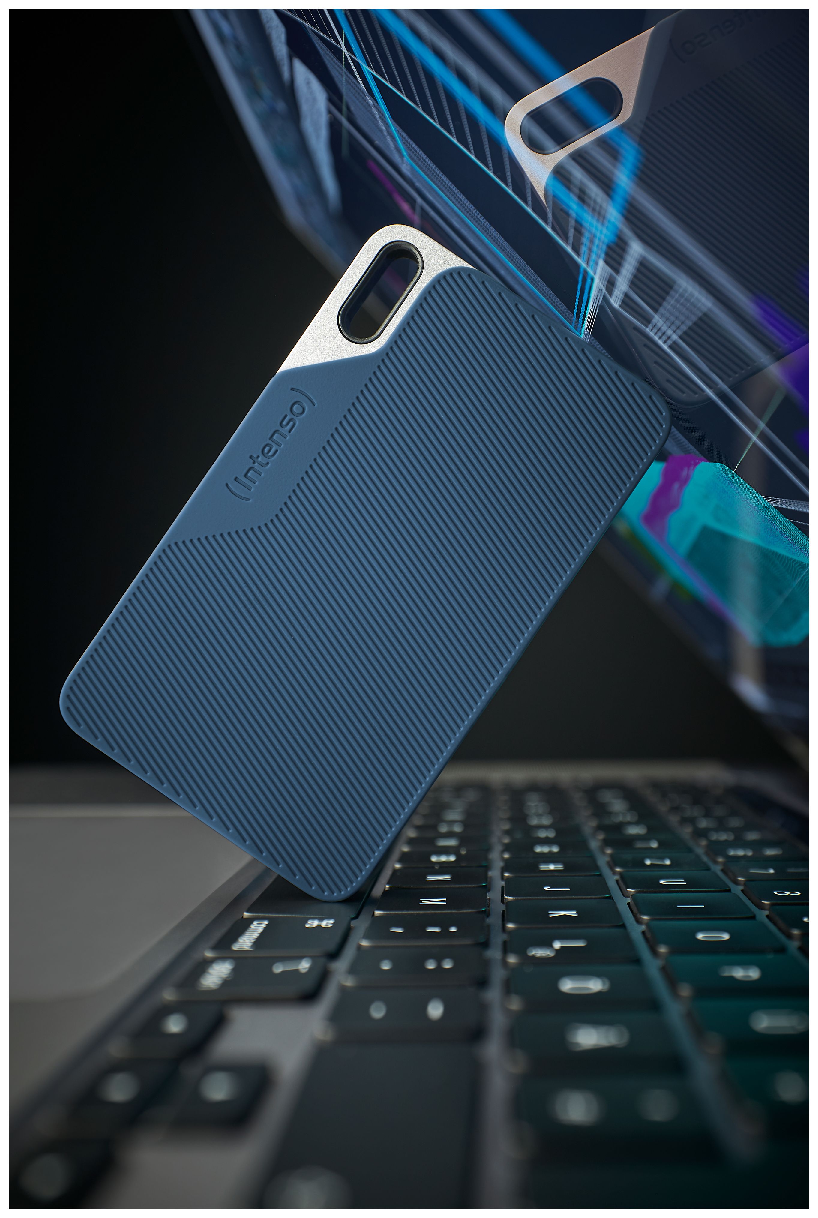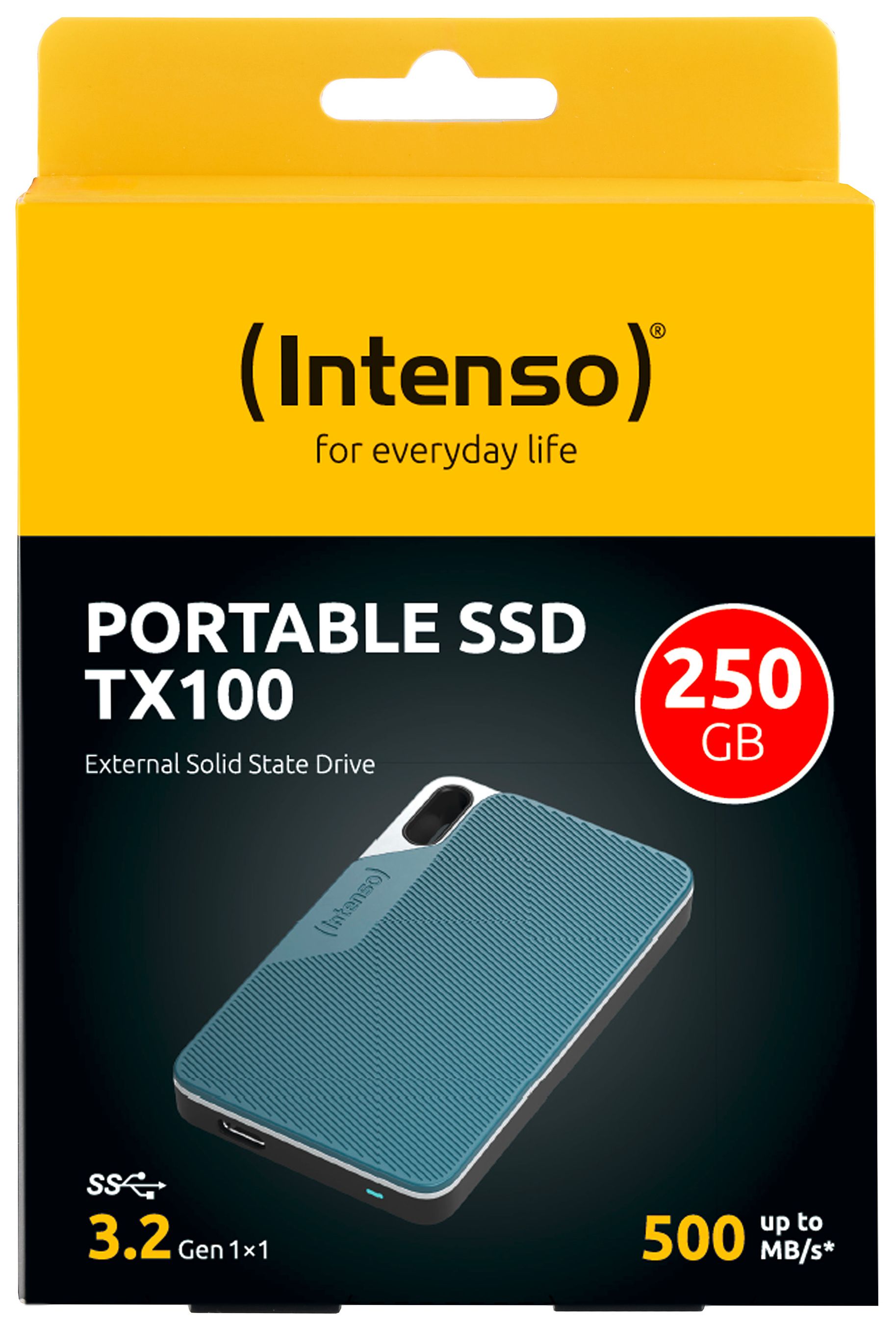 Die externe SSD TX100 von Intenso ist dank seiner robusten gummierten Oberfläche für eine lange Lebensdauer ausgelegt. Die TX100 ist in einer Reihe von Optionen erhältlich, von 250 GB bis hin zu 2 TB für deine größten digitalen Abenteuer. Darüber hinaus ist die externe SSD mit einer Super Speed USB 3.2 Gen 1x1 Schnittstelle ausgestattet, die eine schnelle Datenübertragung mit bis zu 500 MB/s gewährleistet.