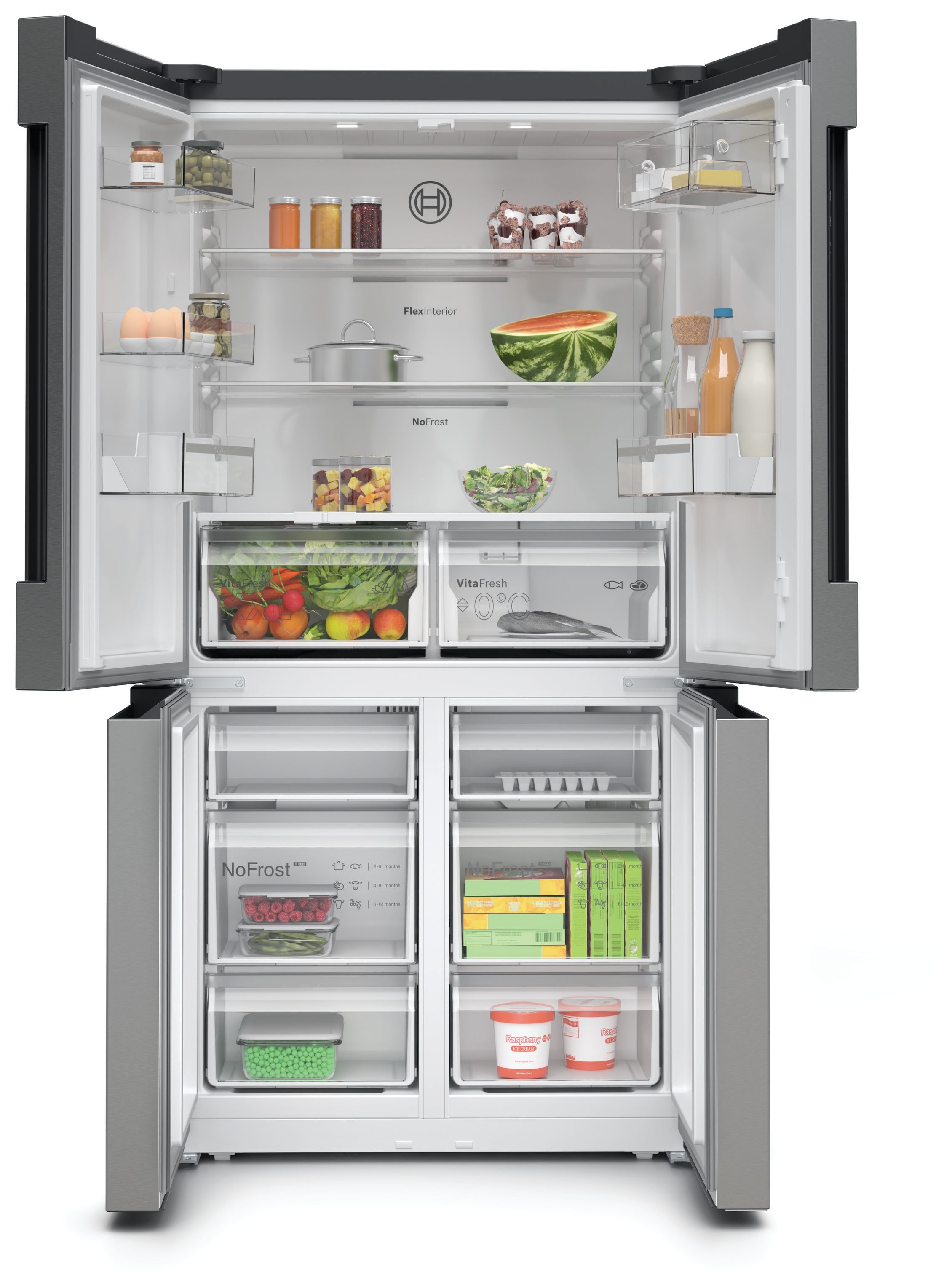 Serie 4 KFN96VPEA Side-by-Side Kühl-/ Gefrierkombination French Door 405 l / 200 l 333 kWh NoFrost 1830 mm x 905 mm (Edelstahl)