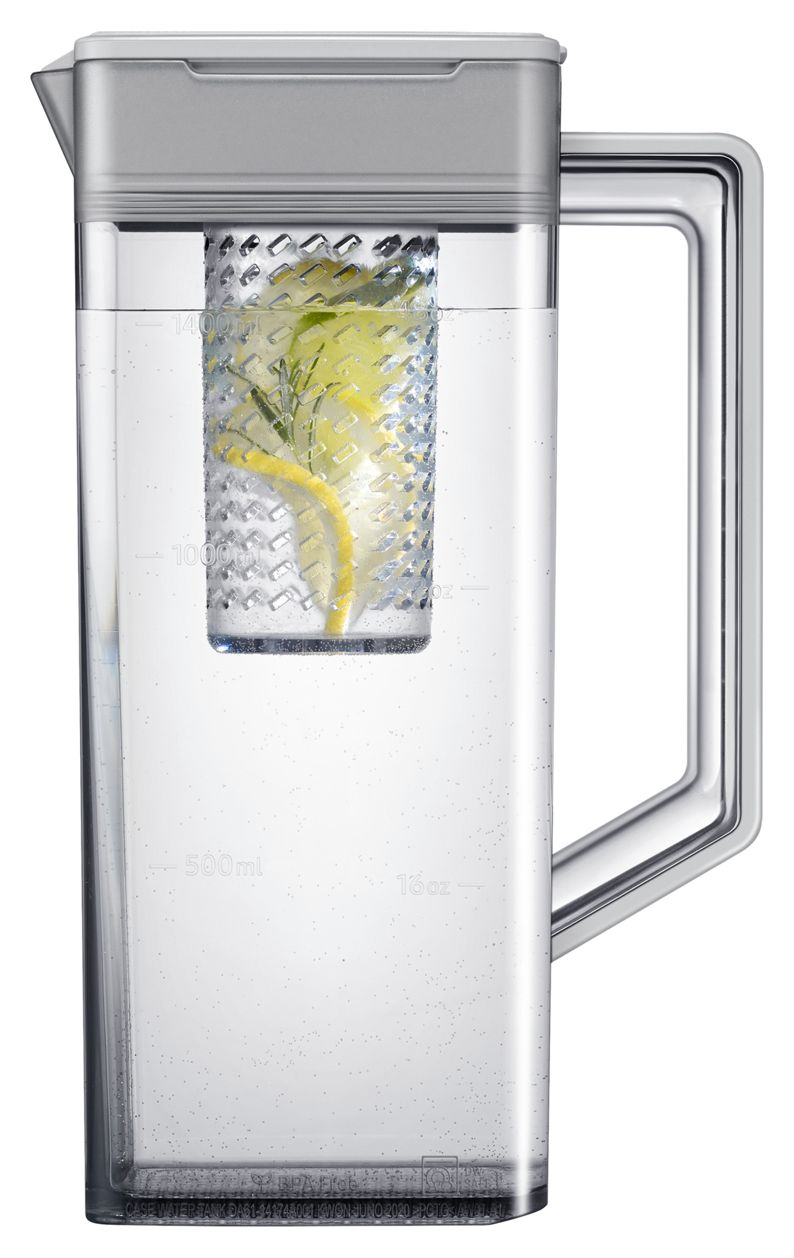 Genieße schnellen und einfachen Zugang zu erfrischendem und aromatisiertem Wasser. Der Dual Water Dispenser bildet den Kern des Beverage Centers. Hier kann gefiltertes, gekühltes Wasser genossen werden - sowohl auf Knopfdruck als auch im sich automatisch auffüllenden Pitcher. Der Pitcher ist griffbereit, spülmaschinenfest und BPA-frei[5] und verfügt über einen Aroma-Infuser. Mit diesem kann mühelos gefiltertes Wasser mit frischem Obst und Gemüse hergestellt werden. Das Beverage Center verbirgt sich dabei hinter einer Tür, für ein schlichtes, modernes Design, das sich in jede Küche integrieren lassen kann.