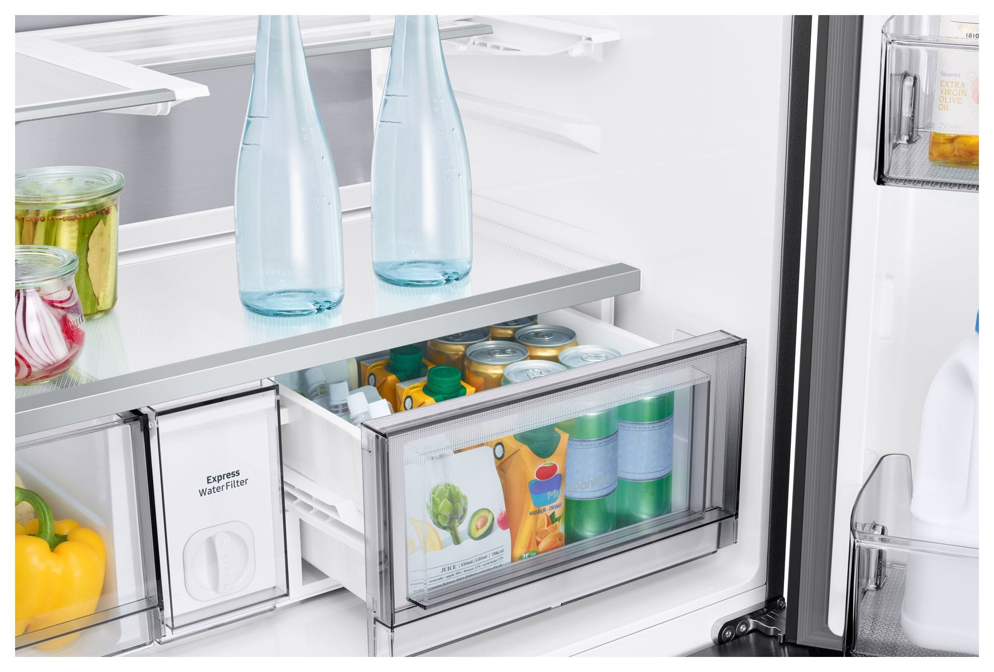 Genieße schnellen und einfachen Zugang zu erfrischendem und aromatisiertem Wasser. Das Beverage Center verfügt über einen griffbereiten spülmaschinenfesten BPA-freien[14] Pitcher mit 1,4 Liter Fassungsvermögen, der automatisch mit gefiltertem Wasser aufgefüllt wird und mit Früchten oder Kräutern aromatisiert werden kann.
