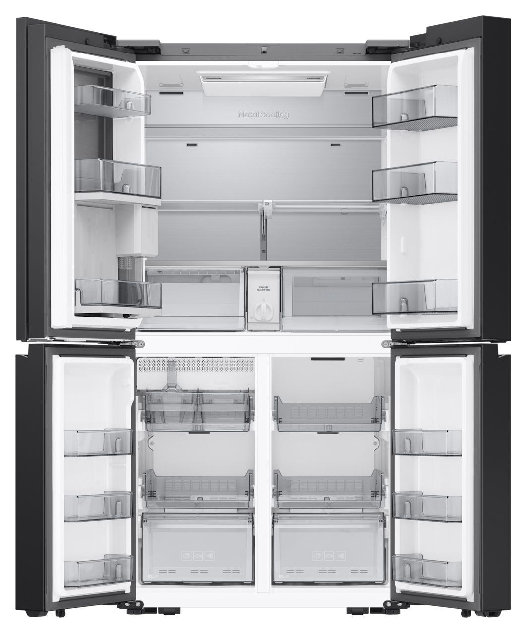 Die Türen lassen sich entweder bequem durch einen Bixby-Sprachbefehl oder Berührungssensoren öffnen. Die seitlich platzierten Sensoren müssen nur leicht berührt werden und können dir so helfen, die Tür mit wenig Kraftaufwand zu öffnen[13]. Je nach Einstellung in der SmartThings App öffnen die Türen entweder weit, oder nur teilweise und können sich wieder schließen[13]. Die Sensoren sind beleuchtet und daher auch im Dunkeln sichtbar. Zur Warnung ertönt bei Türöffnung ein Signal.