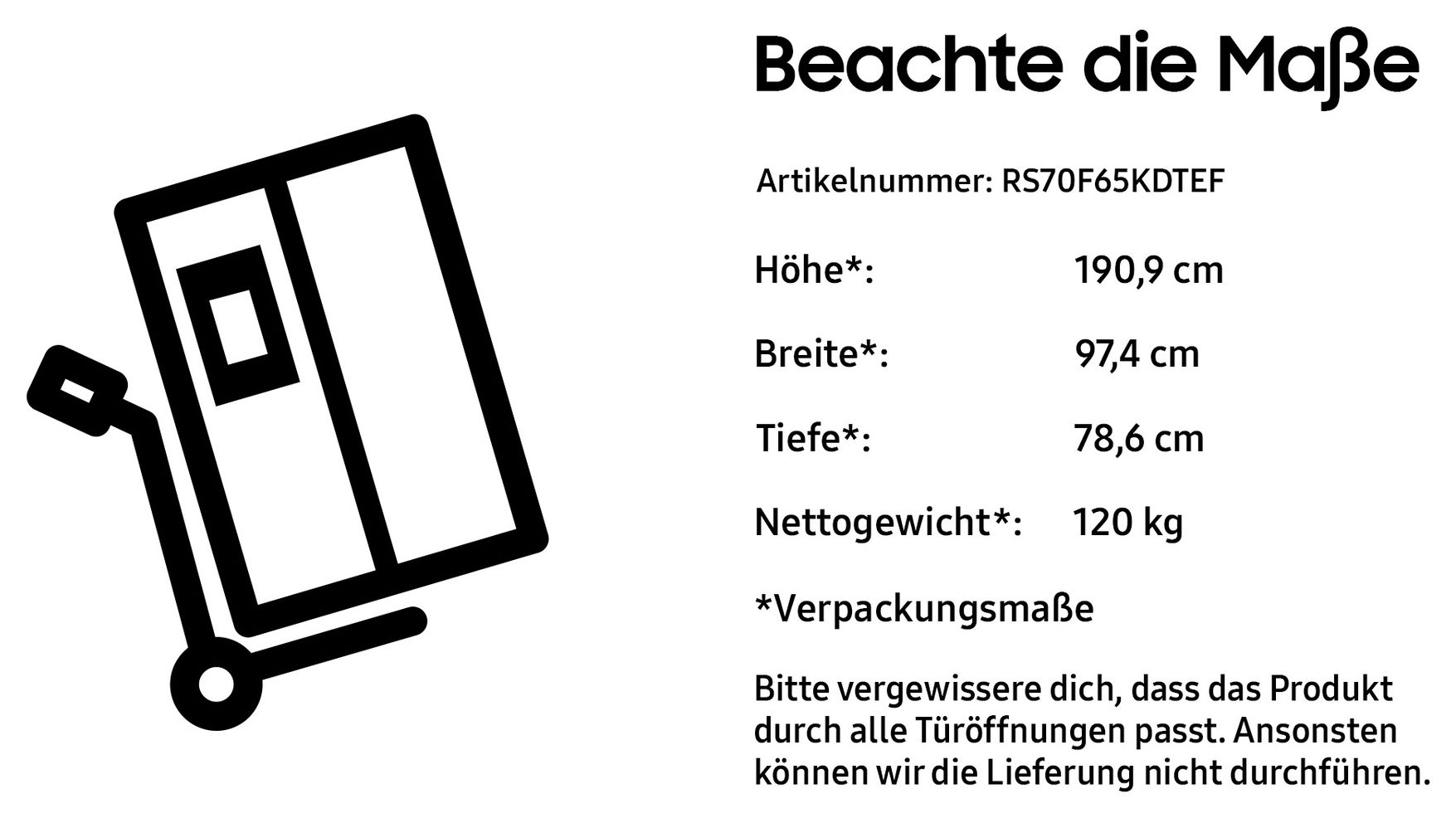 RS70F65KDT Side-by-Side Kühl-/ Gefrierkombination 420 l / 220 l 279 kWh 1780 mm x 912 mm (Edelstahl)