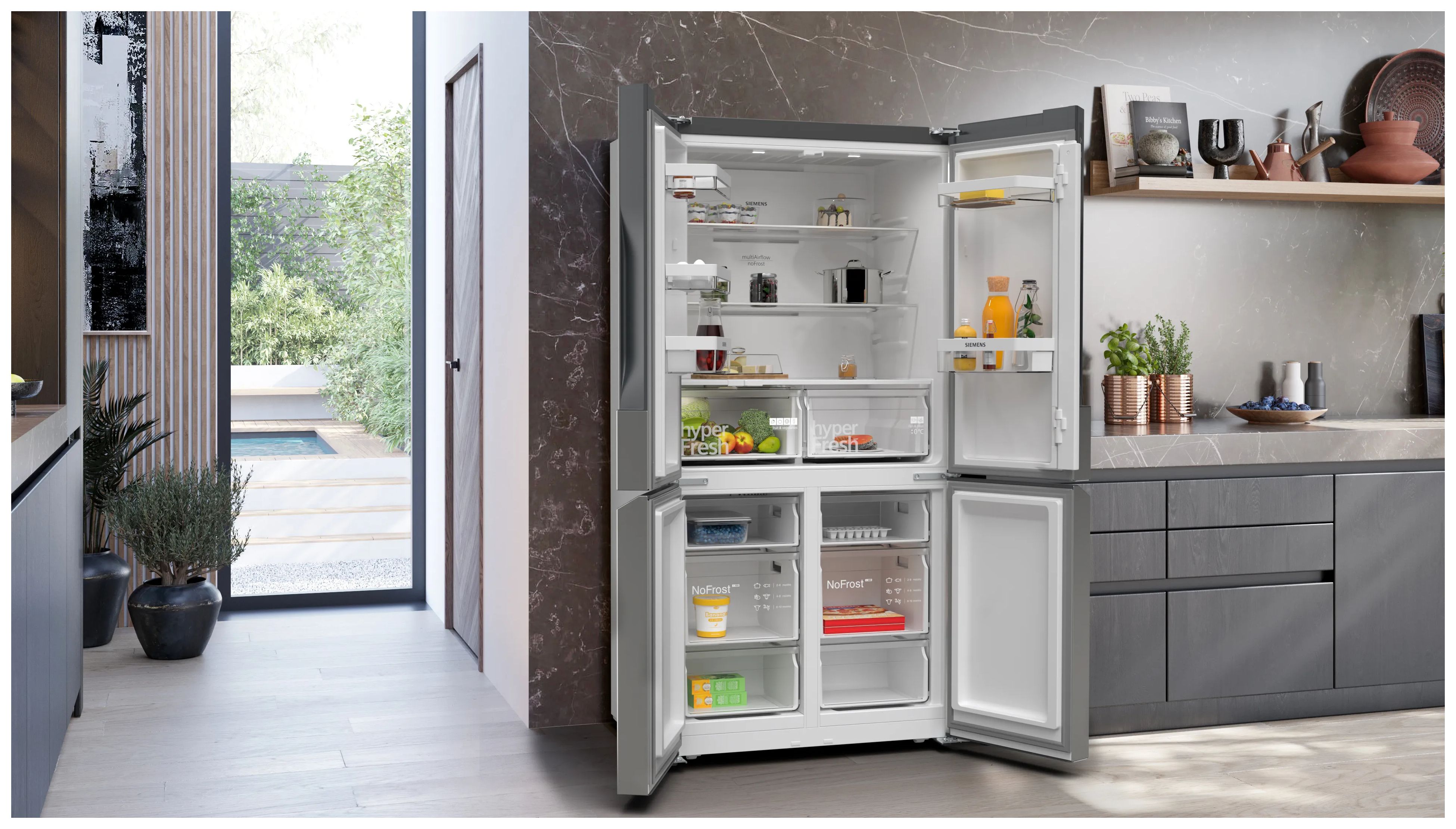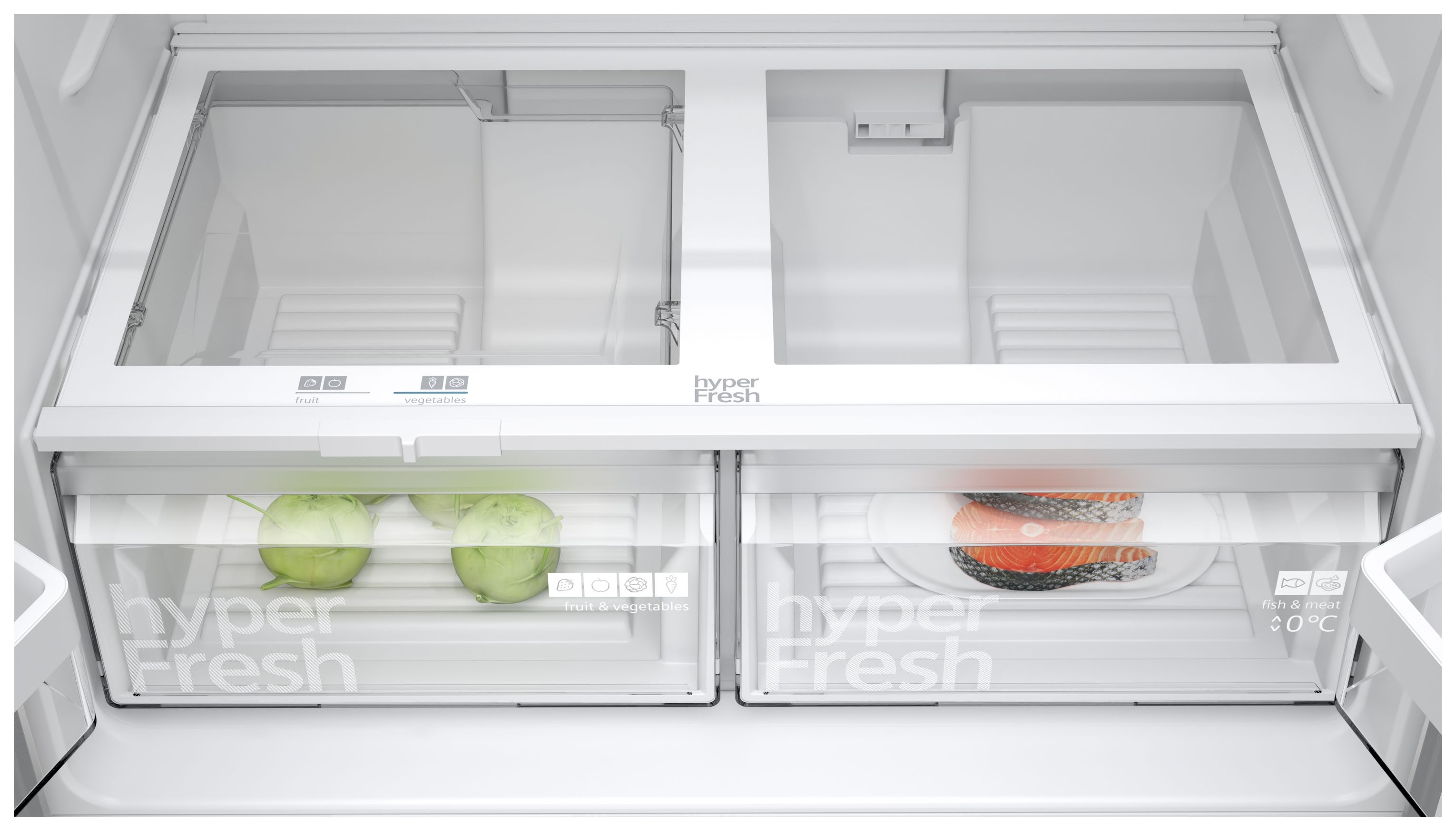 iQ300 KF96NVPEA Side-by-Side Kühl-/ Gefrierkombination French Door 405 l / 200 l 333 kWh NoFrost 1830 mm x 910 mm (Silber)