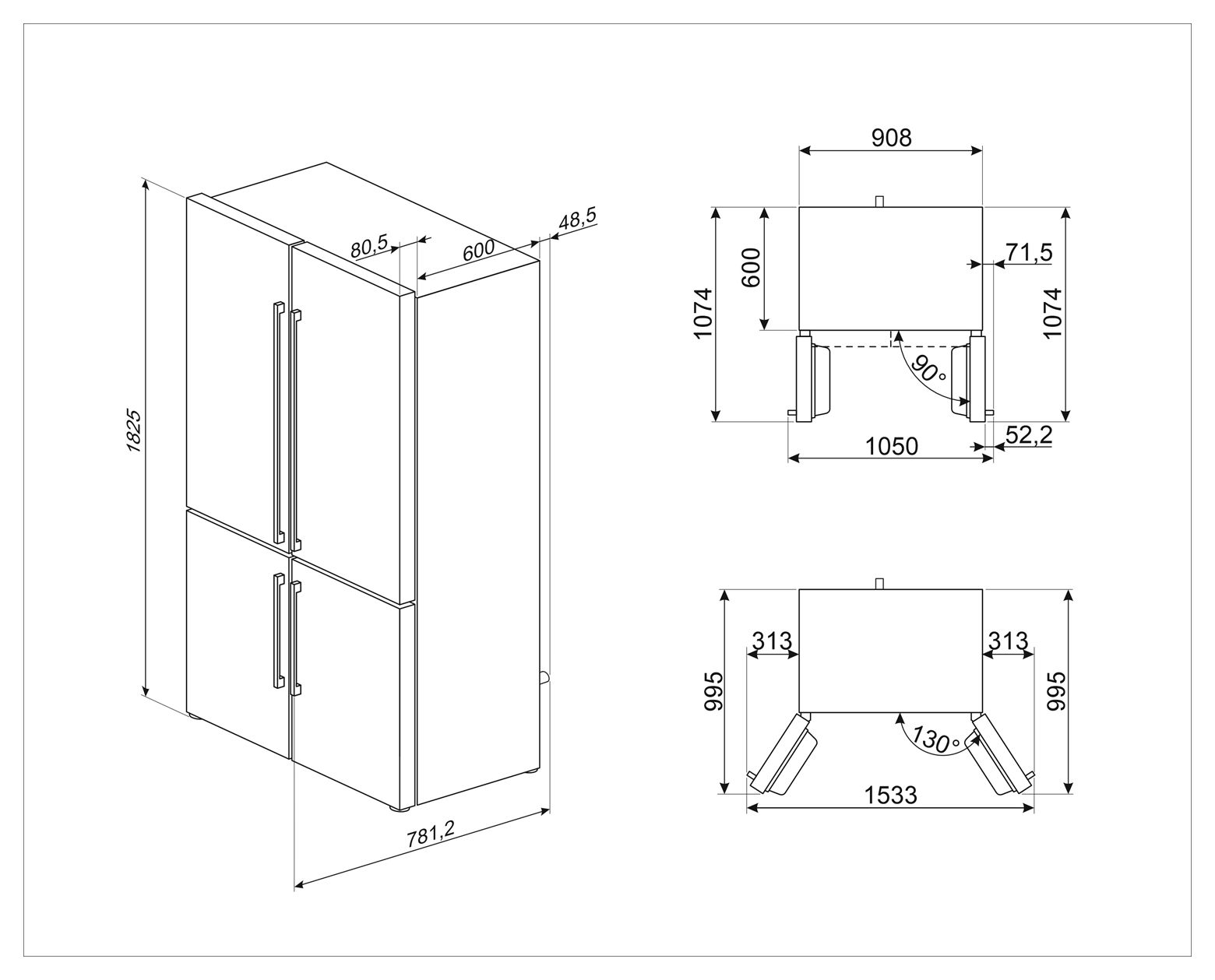 FQ60NDE Side-by-Side Kühl-/ Gefrierkombination French Door 376 l / 196 l 338 kWh NoFrost 1820 mm x 908 mm (Schwarz)