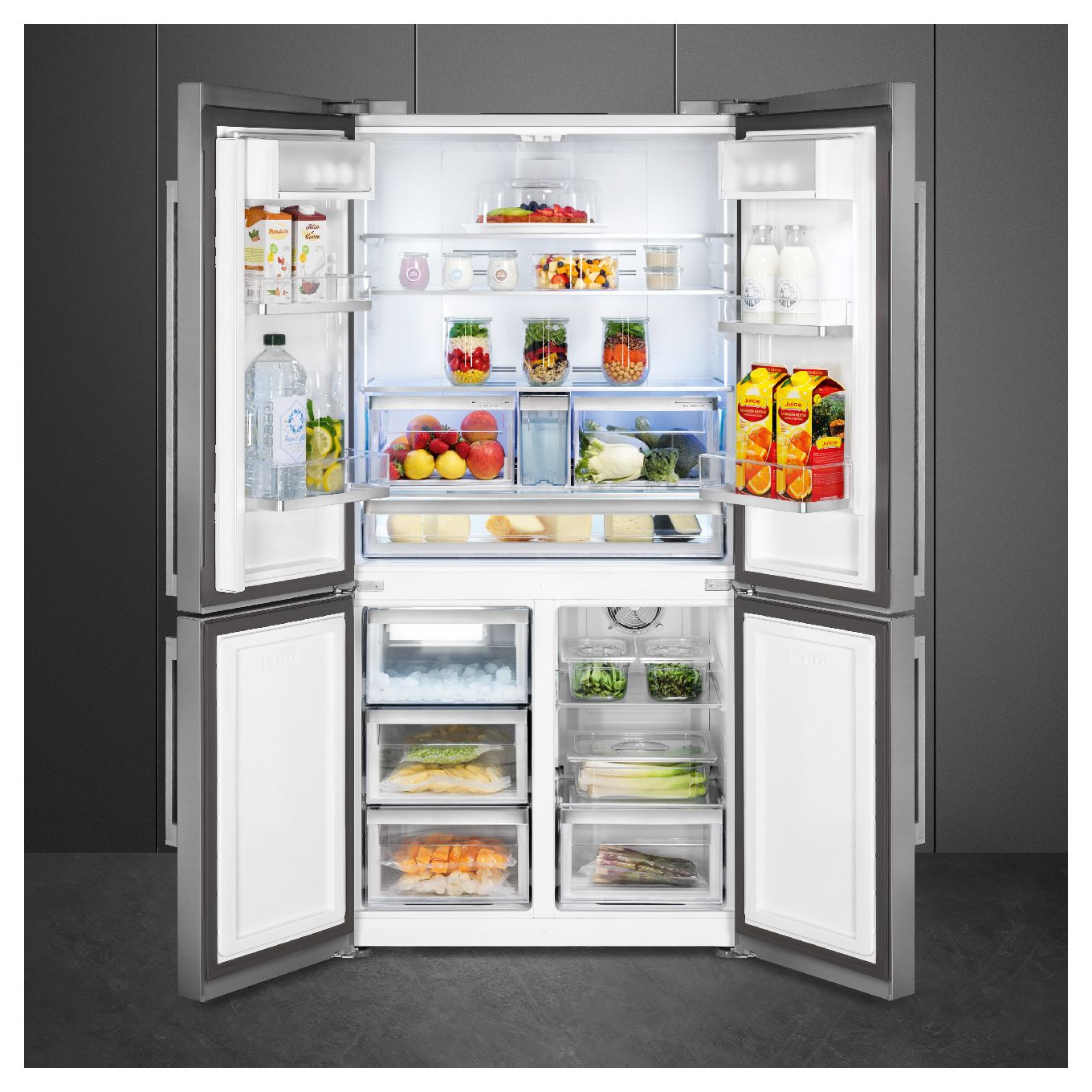 FQ60XDAIE Side-by-Side Kühl-/ Gefrierkombination French Door 376 l / 196 l 338 kWh NoFrost 1820 mm x 908 mm (Edelstahl)