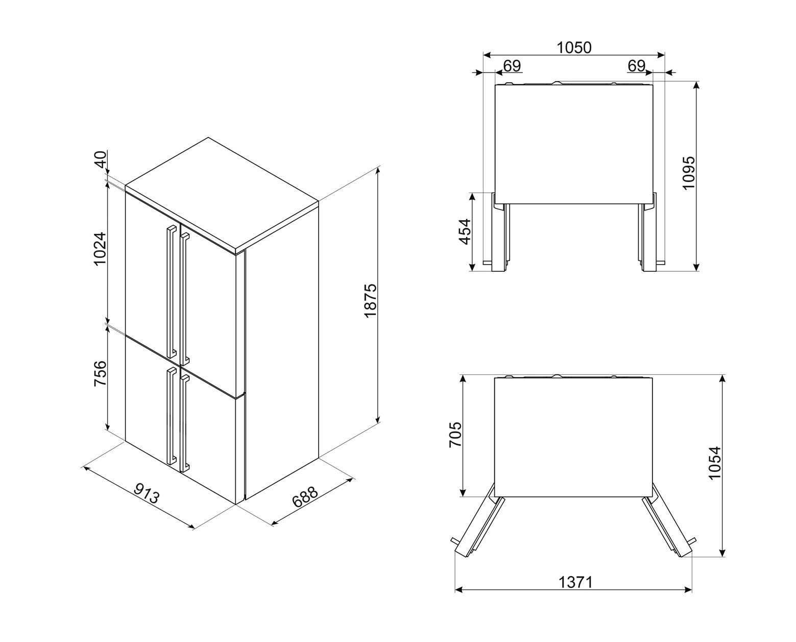 FQ960BL6 Side-by-Side Kühl-/ Gefrierkombination French Door 376 l / 196 l 338 kWh NoFrost 1870 mm x 915 mm (Schwarz)