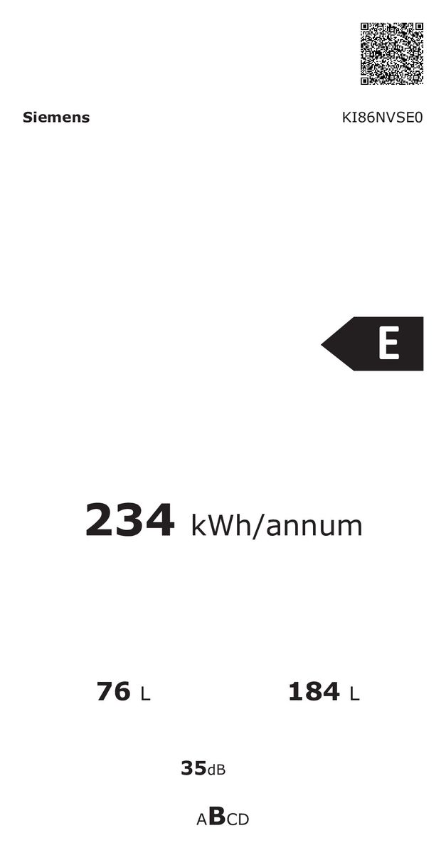 Siemens iQ300 KI86NVSE0 Schlepptür 184 l / 76 l 177,5 cm Einbau Kühl-/Gefrierkombination 234 kWh (3)