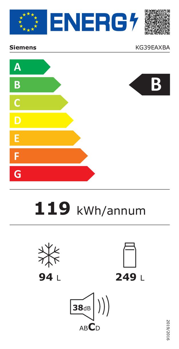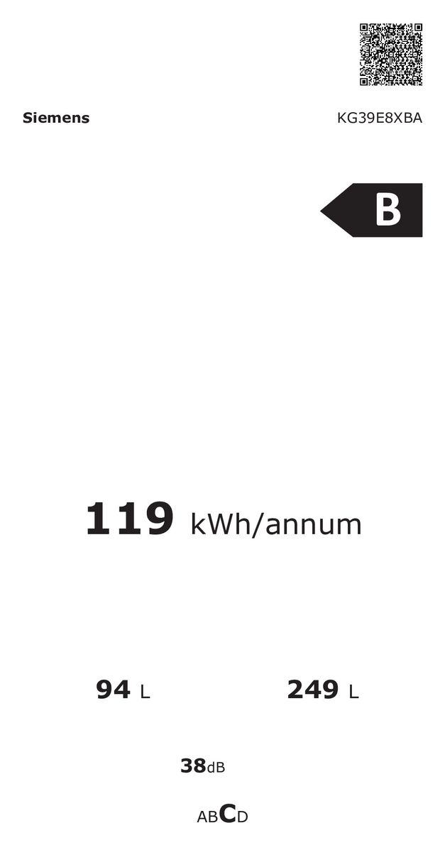 Siemens iQ500 KG39EAXBA 249 l / 94 l Kühl-Gefrierkombi freistehend 119 kWh Jahr (Schwarz)