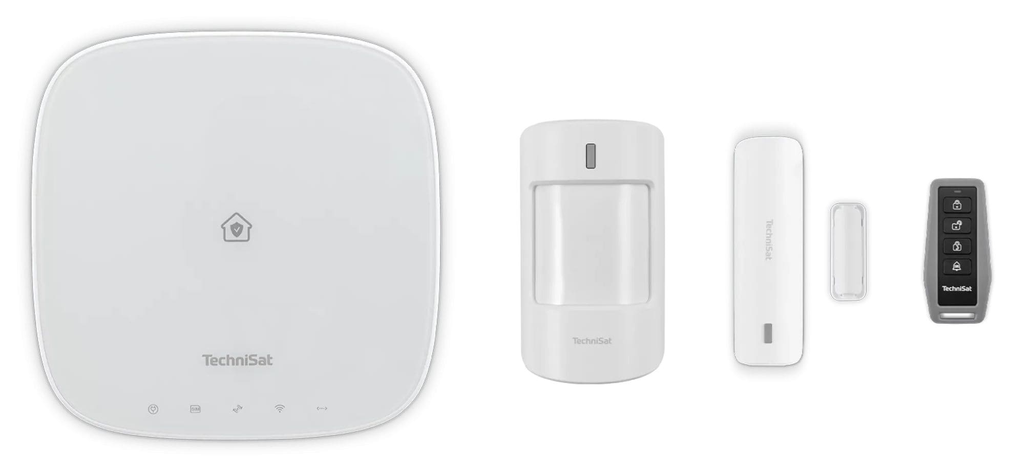 Das TECHNISMART Startpaket beinhaltet die Zentraleinheit, eine Fernbedienung, einen Bewegungsmelder und einen Tür-/Fensterkontakt, der den Schließzustand von Türen und Fenstern erfasst. Neben den im Startpaket enthaltenen Geräten gibt es im TECHNISMART Sortiment noch weitere Komponenten, die in das System integriert werden können.