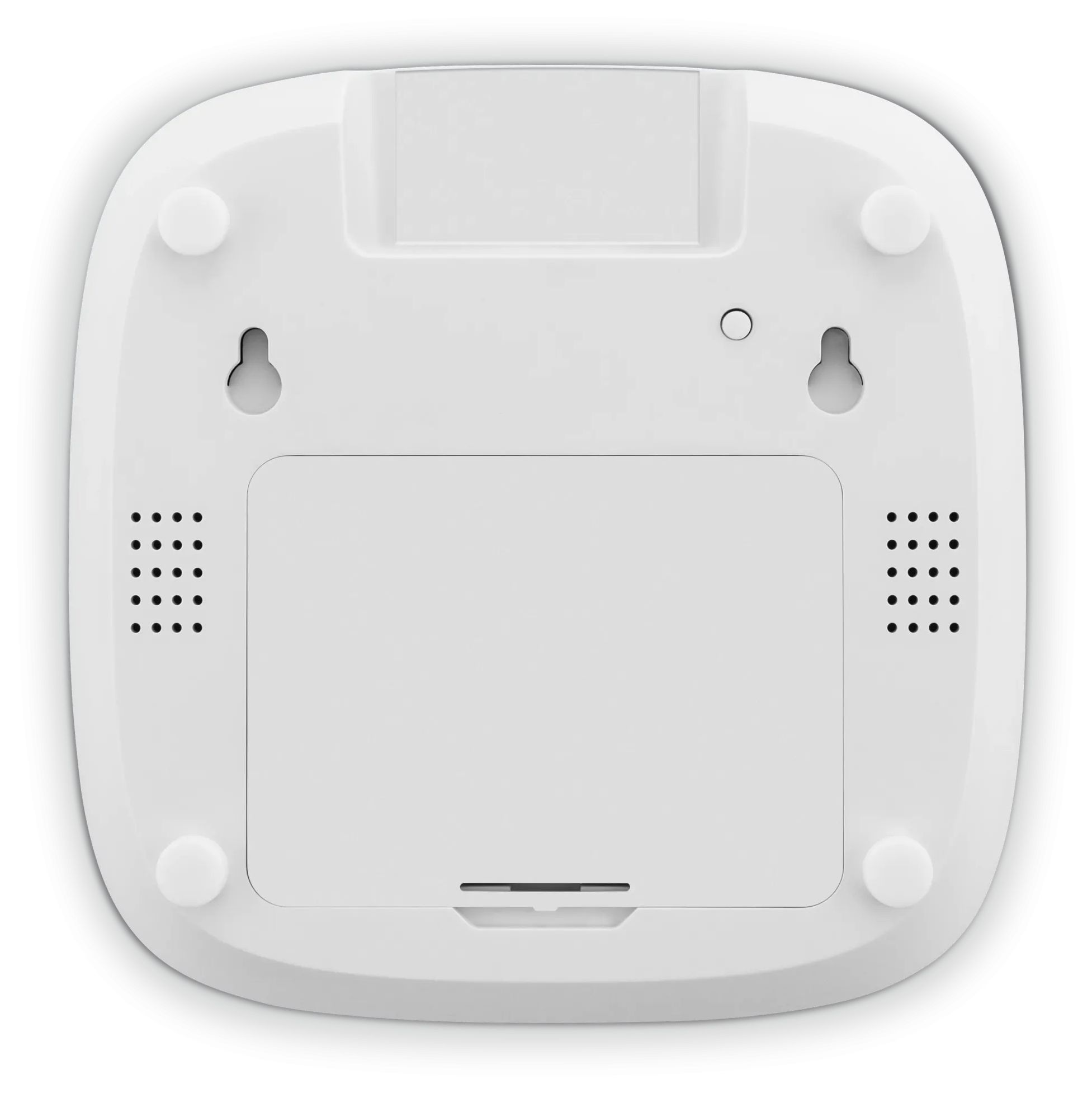 Die Zentraleinheit wird über LAN oder WLAN in das Heimnetzwerk eingebunden. Sie ist in der Lage, kabellos mit den verschiedenen TECHNISMART-Geräten zu kommunizieren und diese zu steuern. Außerdem ist in der Zentraleinheit bereits eine Alarmsirene mit 100 Dezibel integriert, die tagsüber und nachts die Bewohner des Hauses alarmiert und ungebetene Gäste auch akustisch in die Flucht schlagen kann.