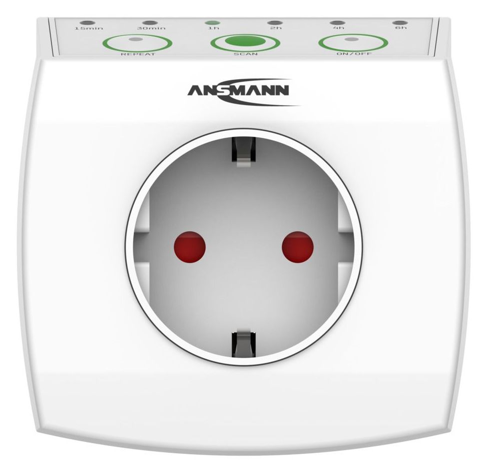ANSMANN Energiespar-Steckdose mit 6 Programmen (15 min bis 6h), Wiederholungstaste und Ein-/Ausschalttaster